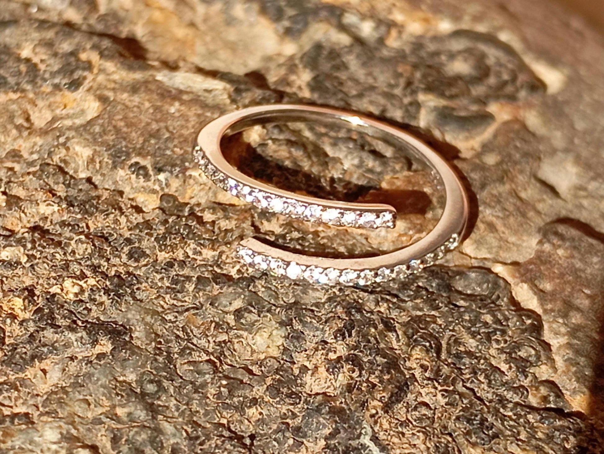 925 Sterling Silver Spiral Ring – Adjustable Open Band with Cubic Zirconia – Dainty Minimalist Wrap Ring – Elegant Gift for Her