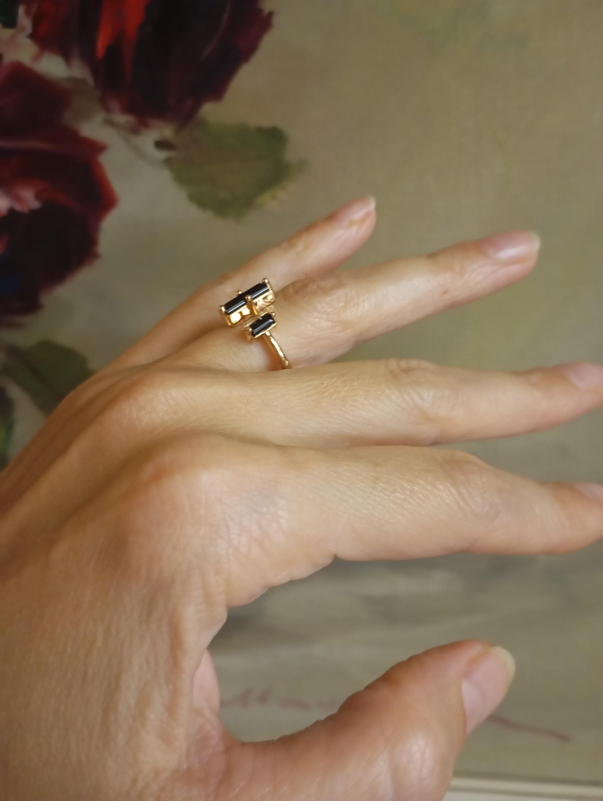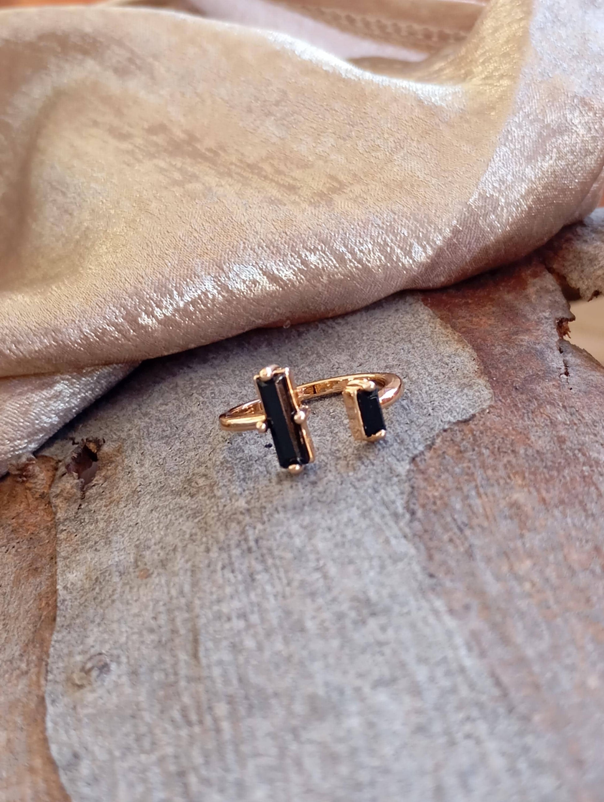 Dainty adjustable open finger ring with black tourmaline, fashion woman's accessories, bohemian ring healing, protection, antique, elegant ring , beautiful friendship gift, party jewelry