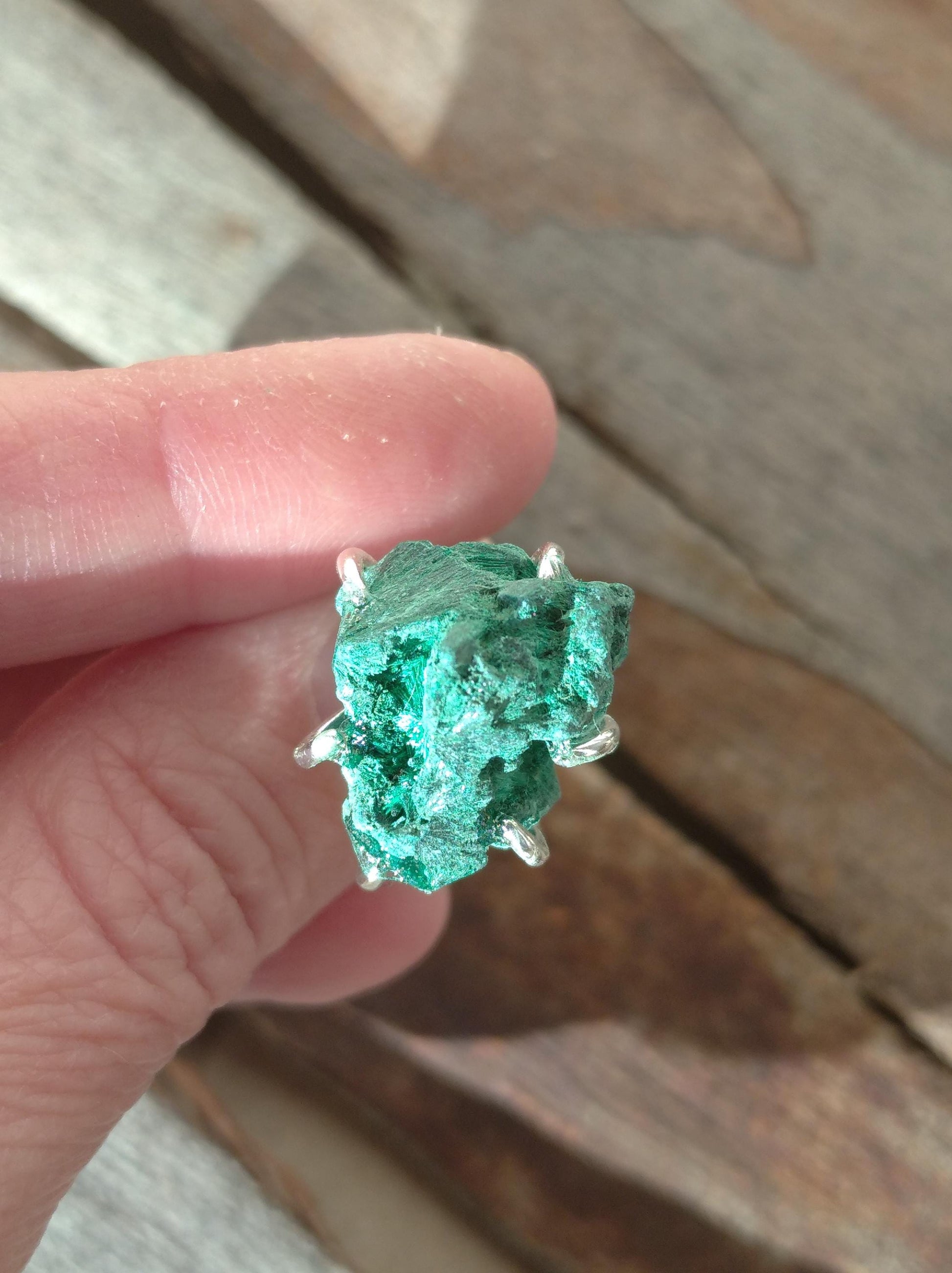 Adjustable open finger ring with Raw Green Malachite, natural gemstone, fashion dainty elegant women protection stone