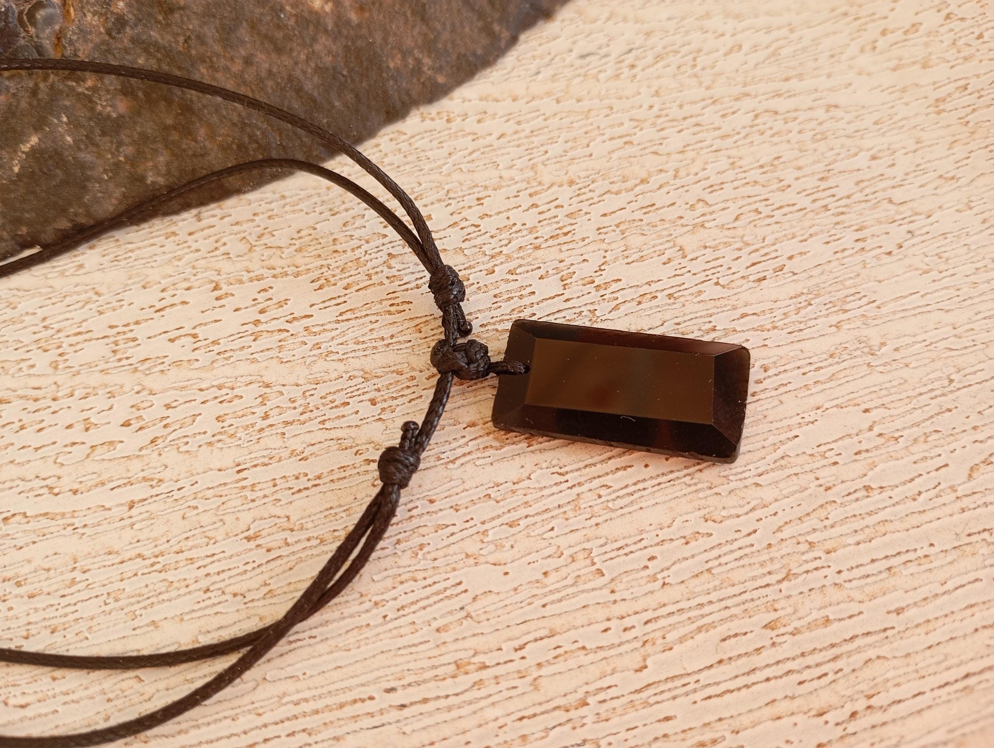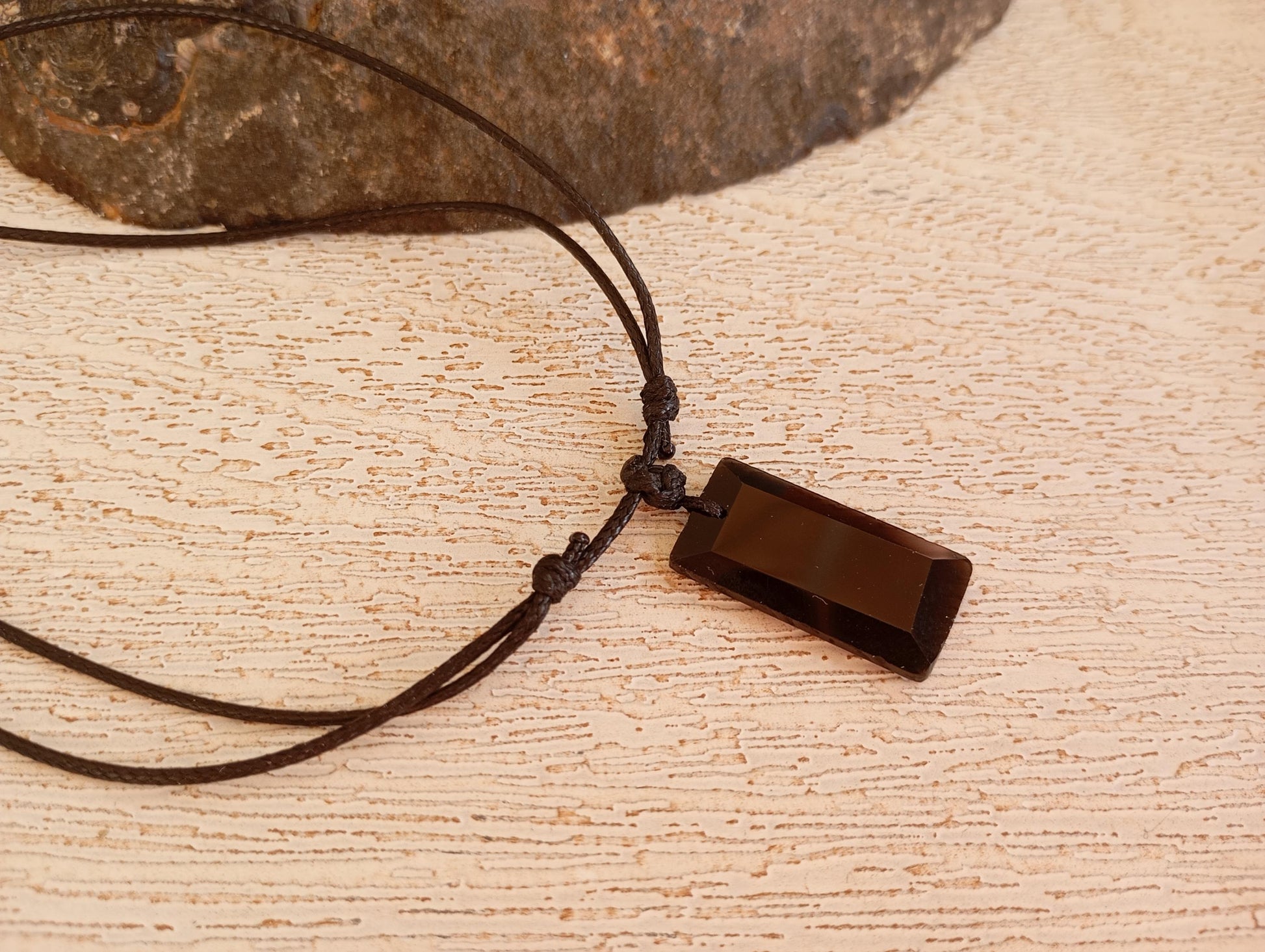 Black Obsidian Rectangular Pendant Necklace, adjustable black cord, Healing Protection fashion casual necklace, natural gemstone