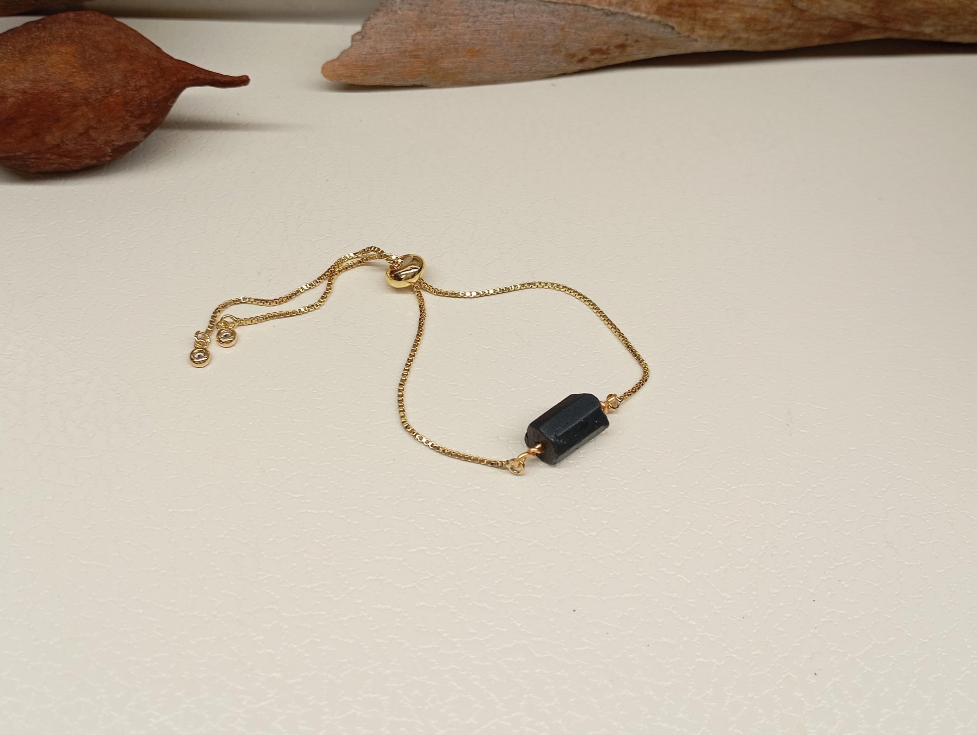 Black Tourmaline Bracelet Gold plated adjustable chain, Natural Raw Gemstone, Healing,Protection from negative energy and evil eye, mascot