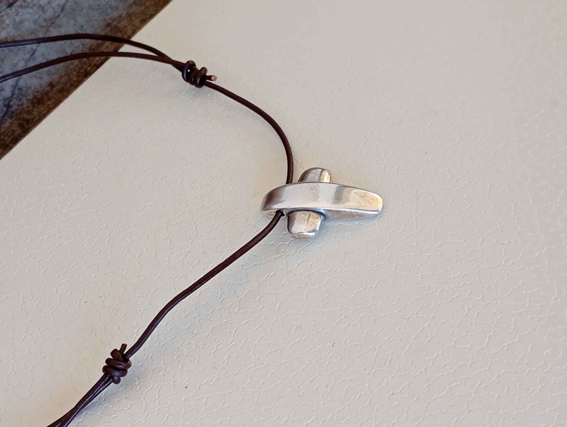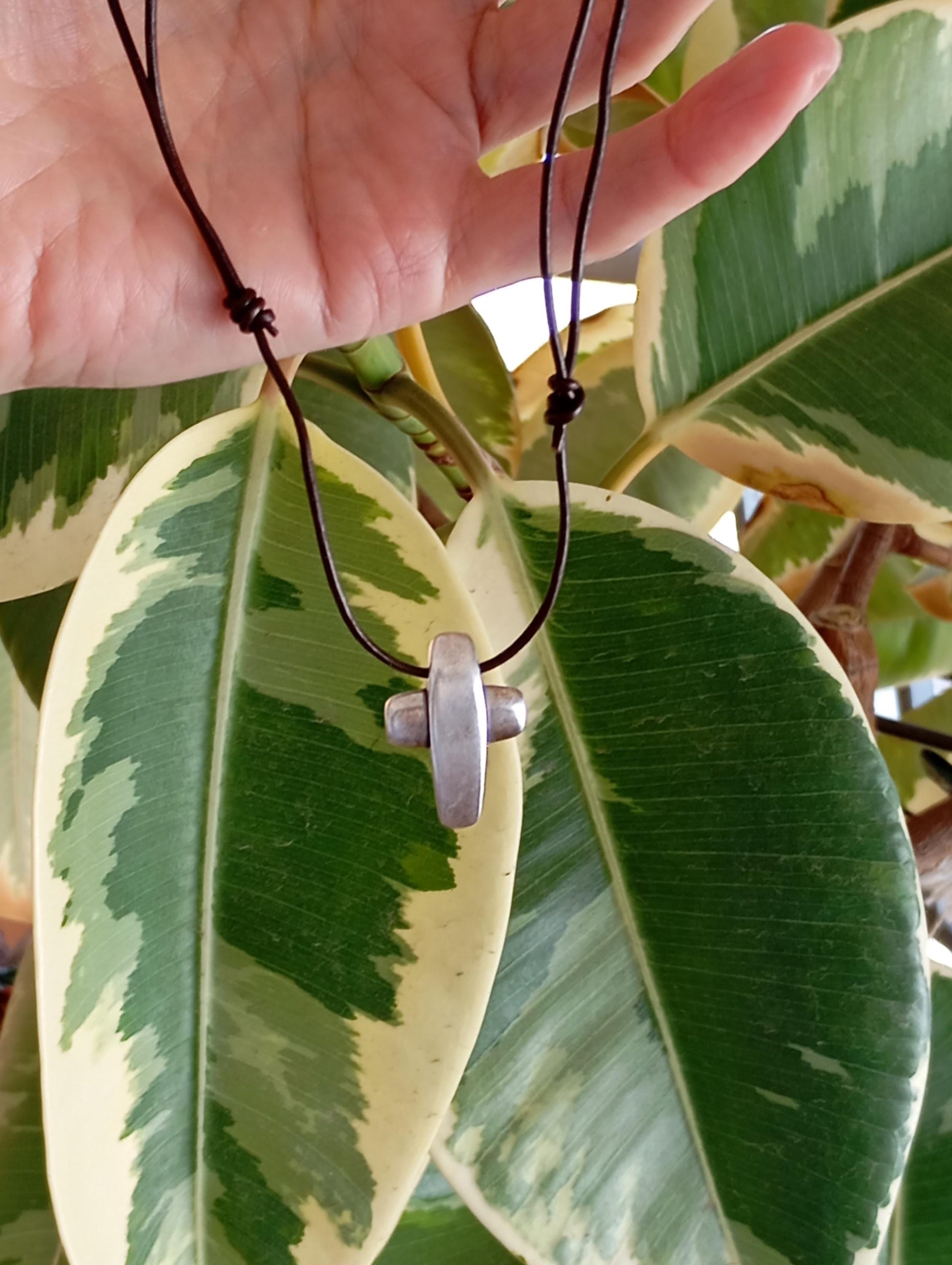 Adjustable necklace with steel cross, adjustable black leather or nylon vegan snake cord
