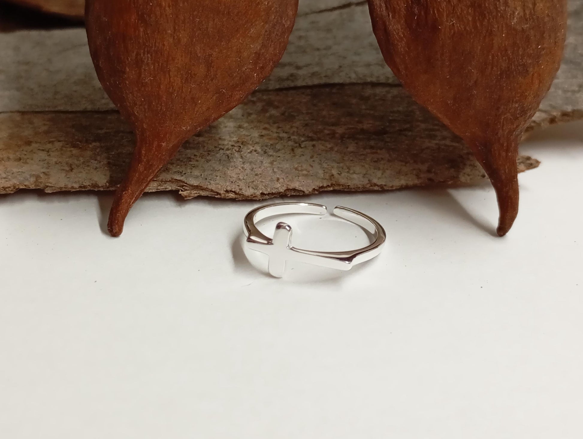 Cross ring 925 sterling silver open finger ring adjustable, charming, minimalist,dainty, church,believer, Christian cross gift for believer