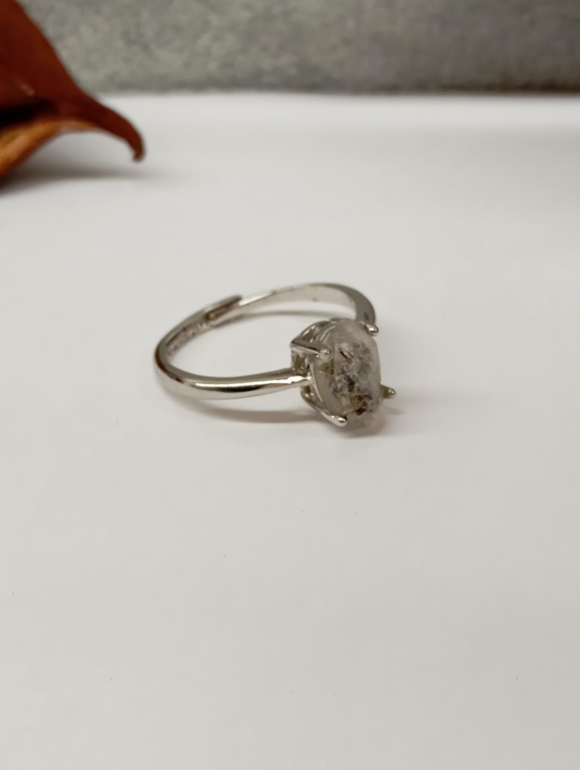 Dainty adjustable open finger ring with natural raw Herkimer Diamond point Quartz, yoga, meditation, healing, protection, antique, bohemian ring , beautiful friendship gift, gift for women.