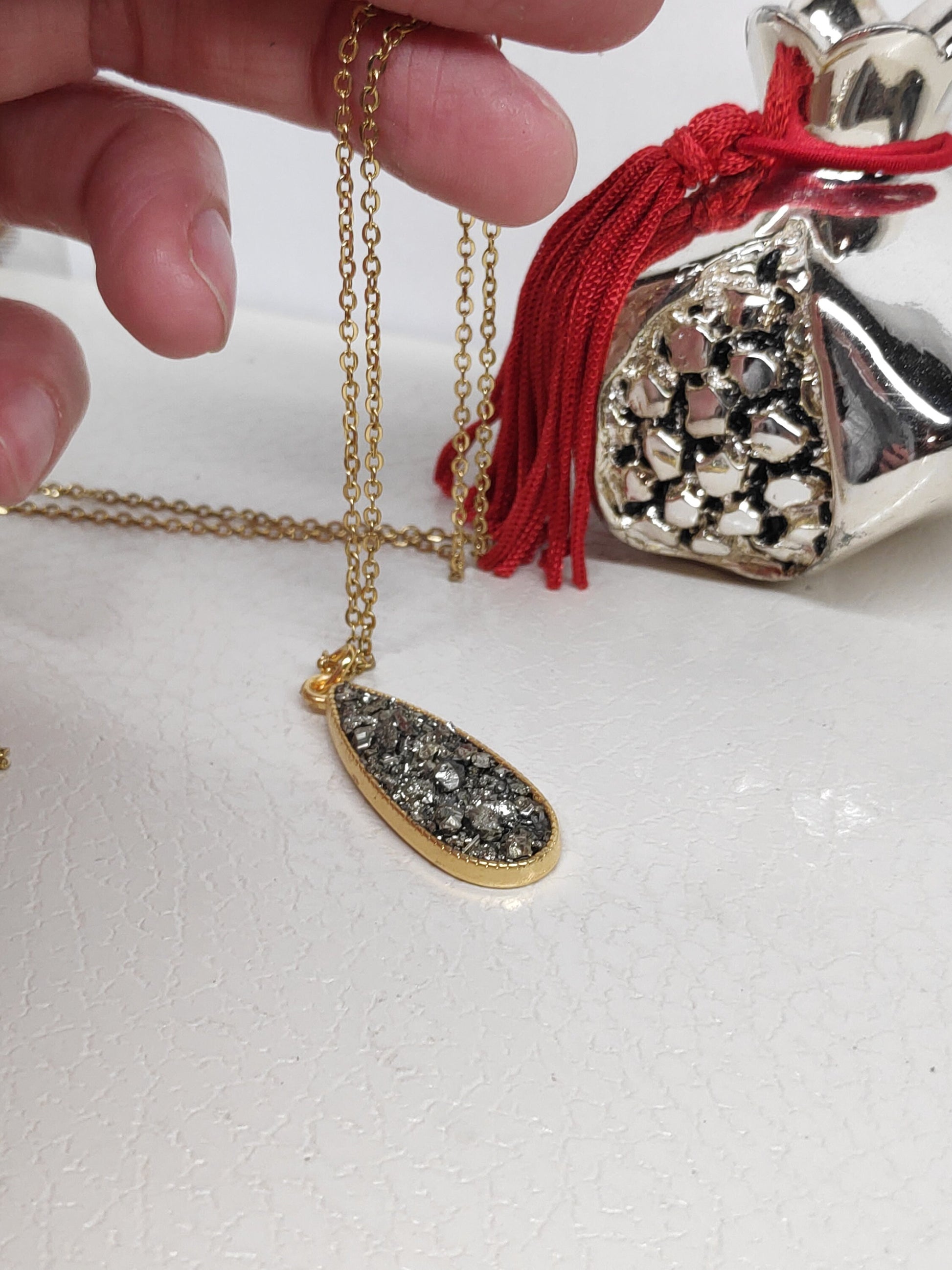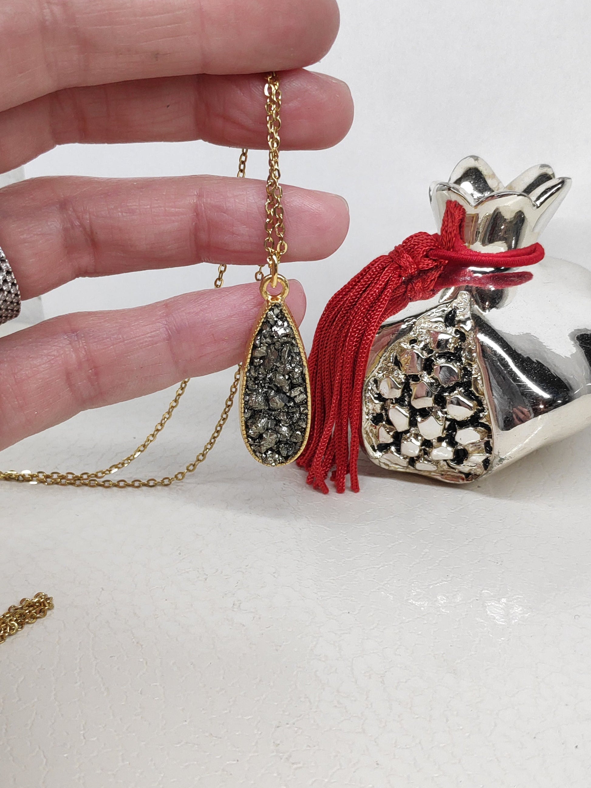 Drop pendant Raw Pyrite Cubes Necklace, Wealth stone Necklace, Handmade Protection Jewellery, Drop shape Iron Pyrite Pendant Necklace