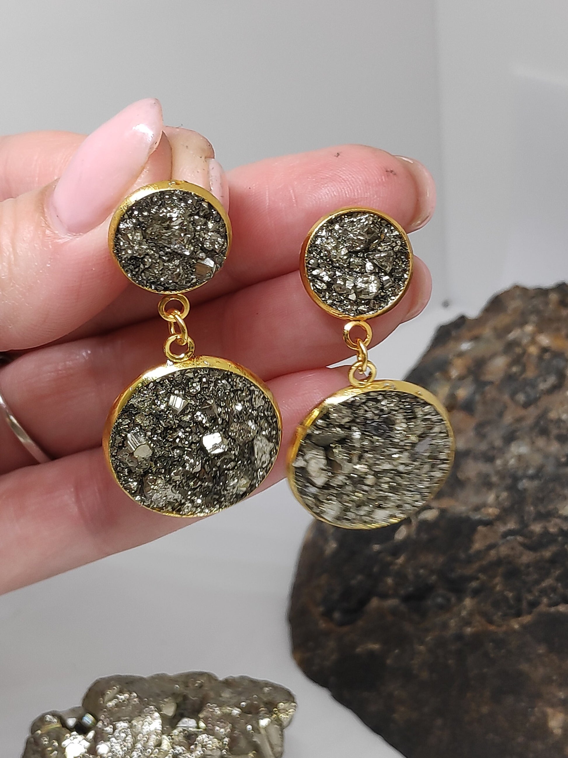 Earrings with Raw Pyrite, sparkly Earrings, Stainless steel gold plated, Handmade Healing Protection Bohemian Dainty Elegant Natural Gem
