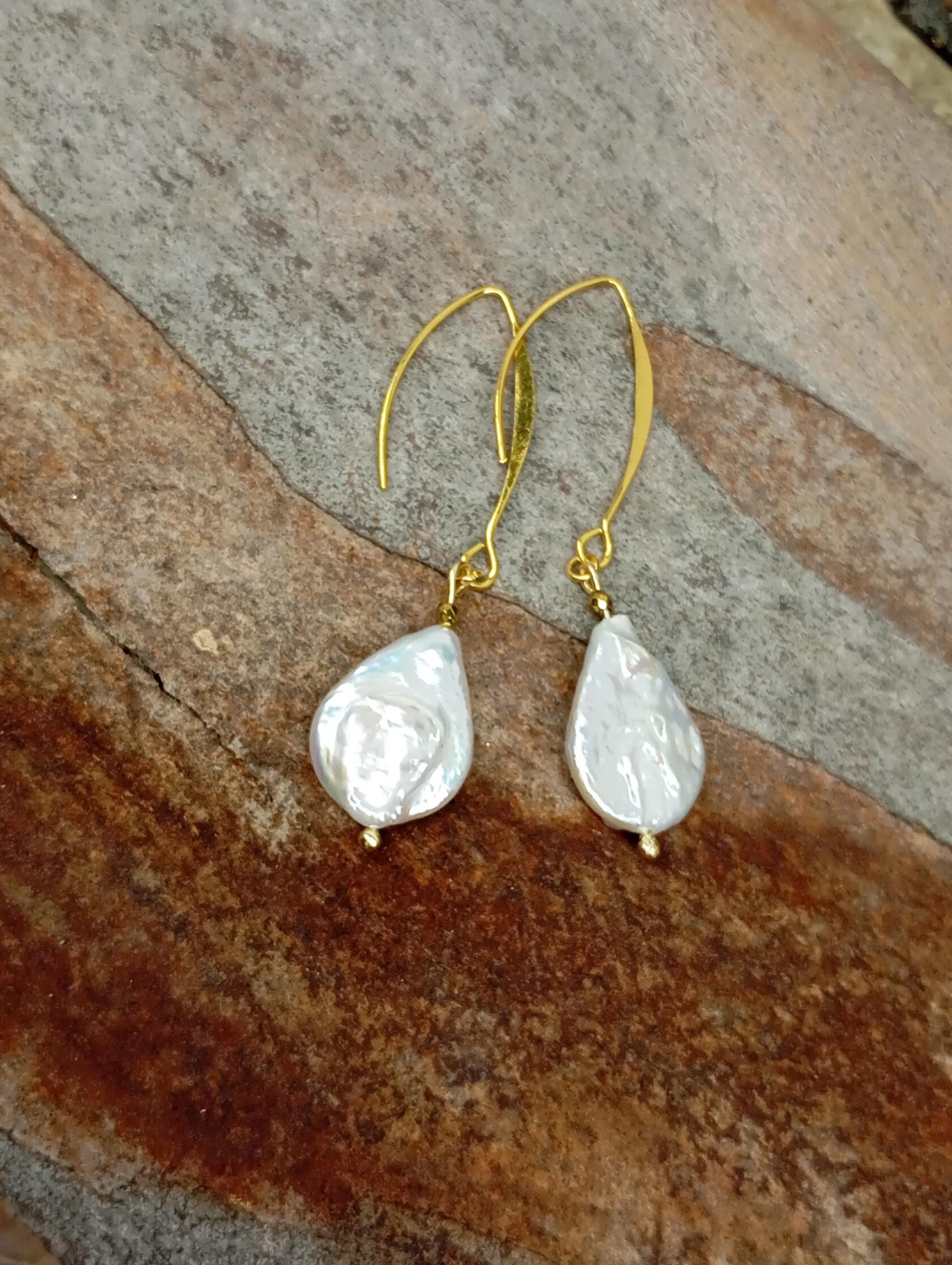 Freshwater droplet shape white Pearls Earrings golden hooks women Dainty, long hanging Elegant Stunning Bohemian Earrings gift for girlfrien