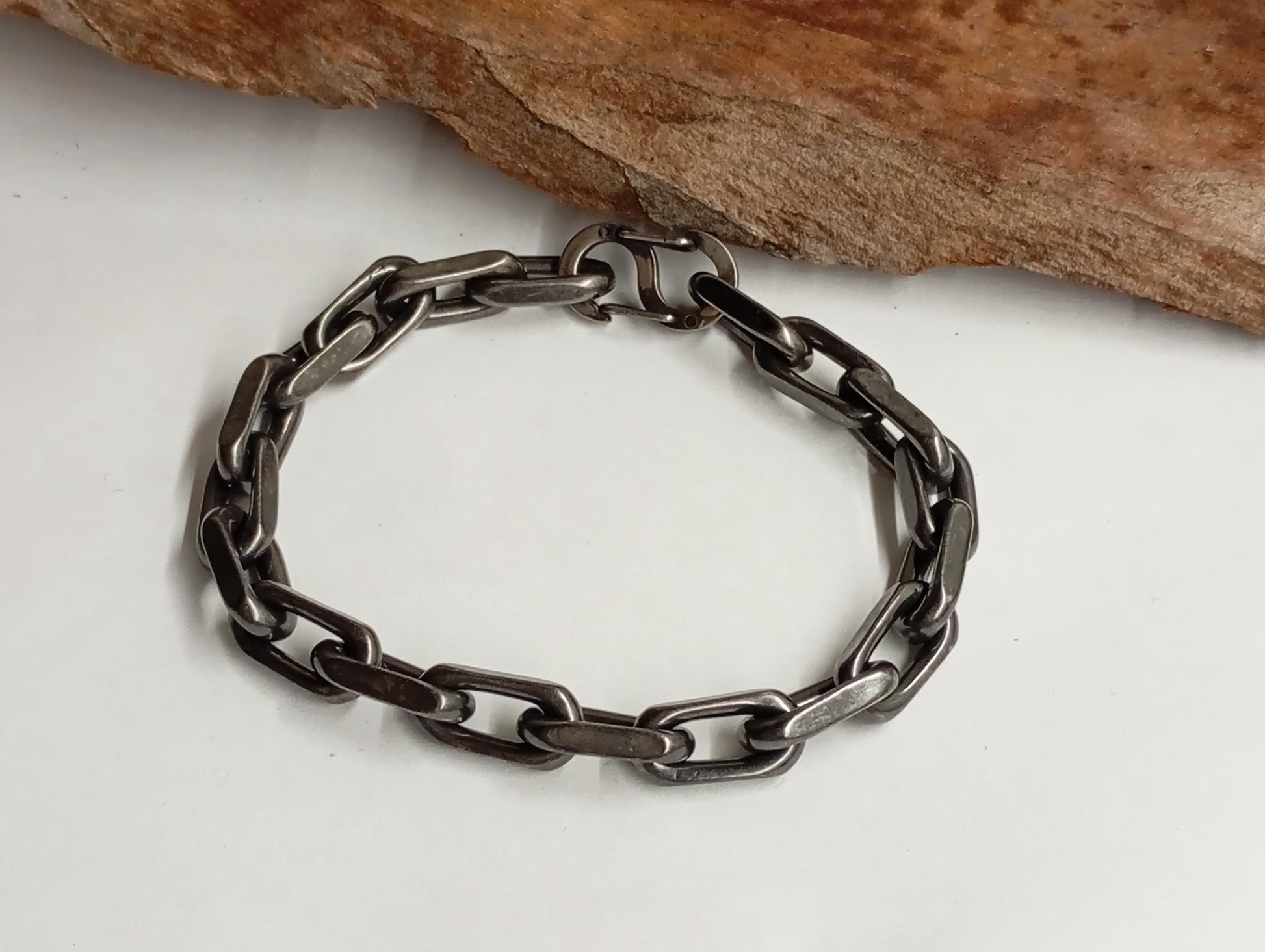 Elevate your style with this rugged and bold handmade chain bracelet, crafted from oxidized steel for a vintage, industrial look. Featuring a chunky curb chain design, this bracelet is both sturdy and stylish, making it perfect for everyday wear or as a statement piece.