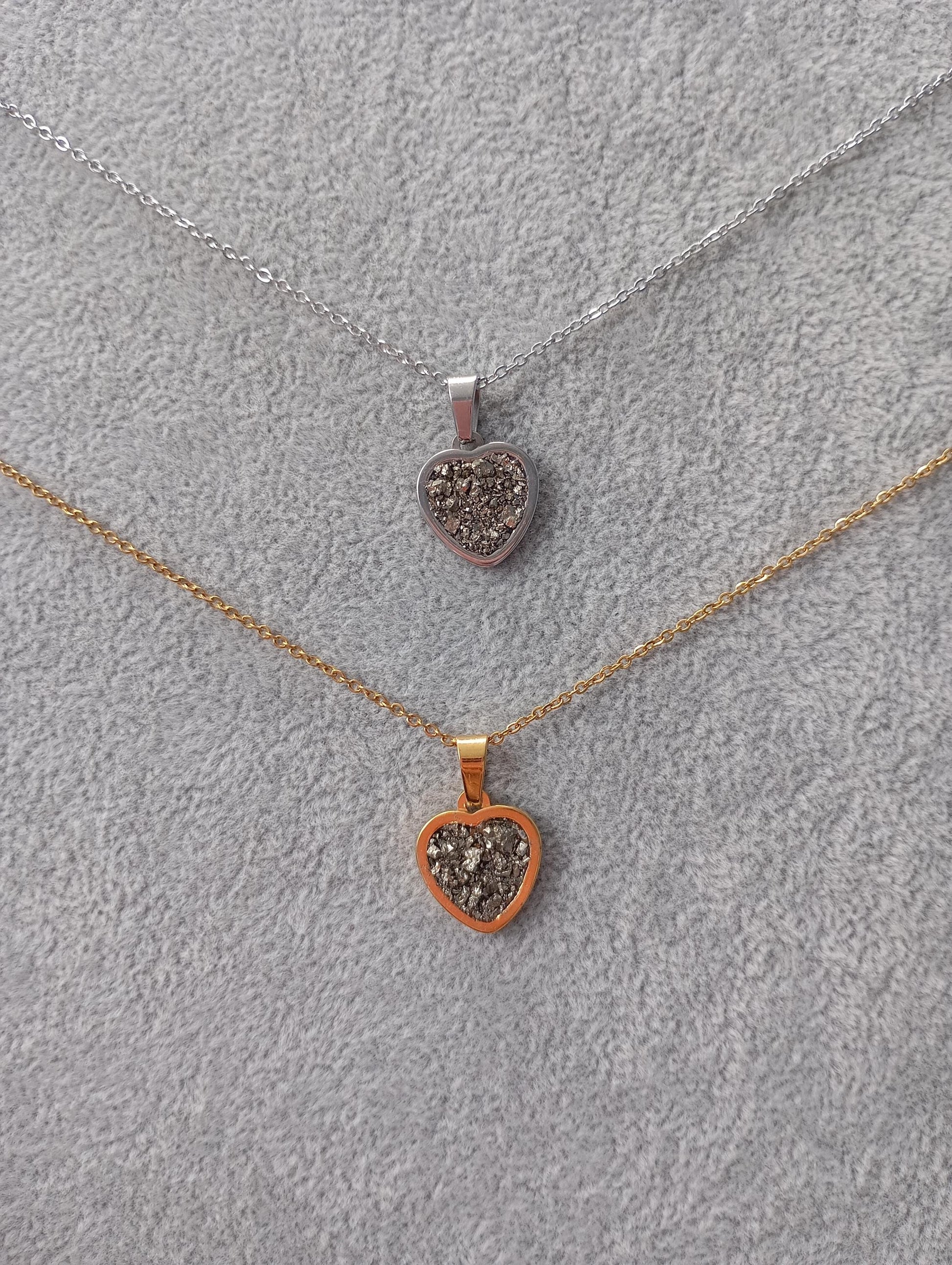 Women's heart shape pendant necklace with Raw Pyrite stones. Wealth stone, natural gemstone.