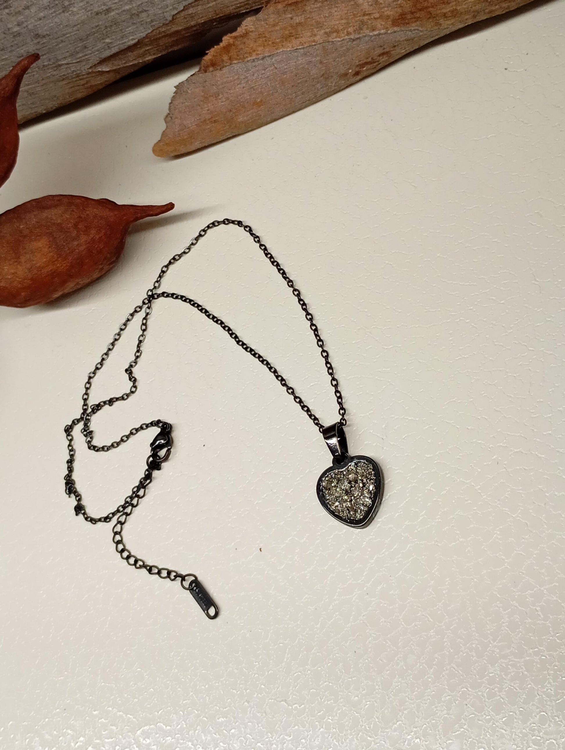 Heart pendant Raw Pyrite pendant Necklace, Wealth stone Necklace, Handmade Protection, bohemian finding, gift for girlfriend, wife