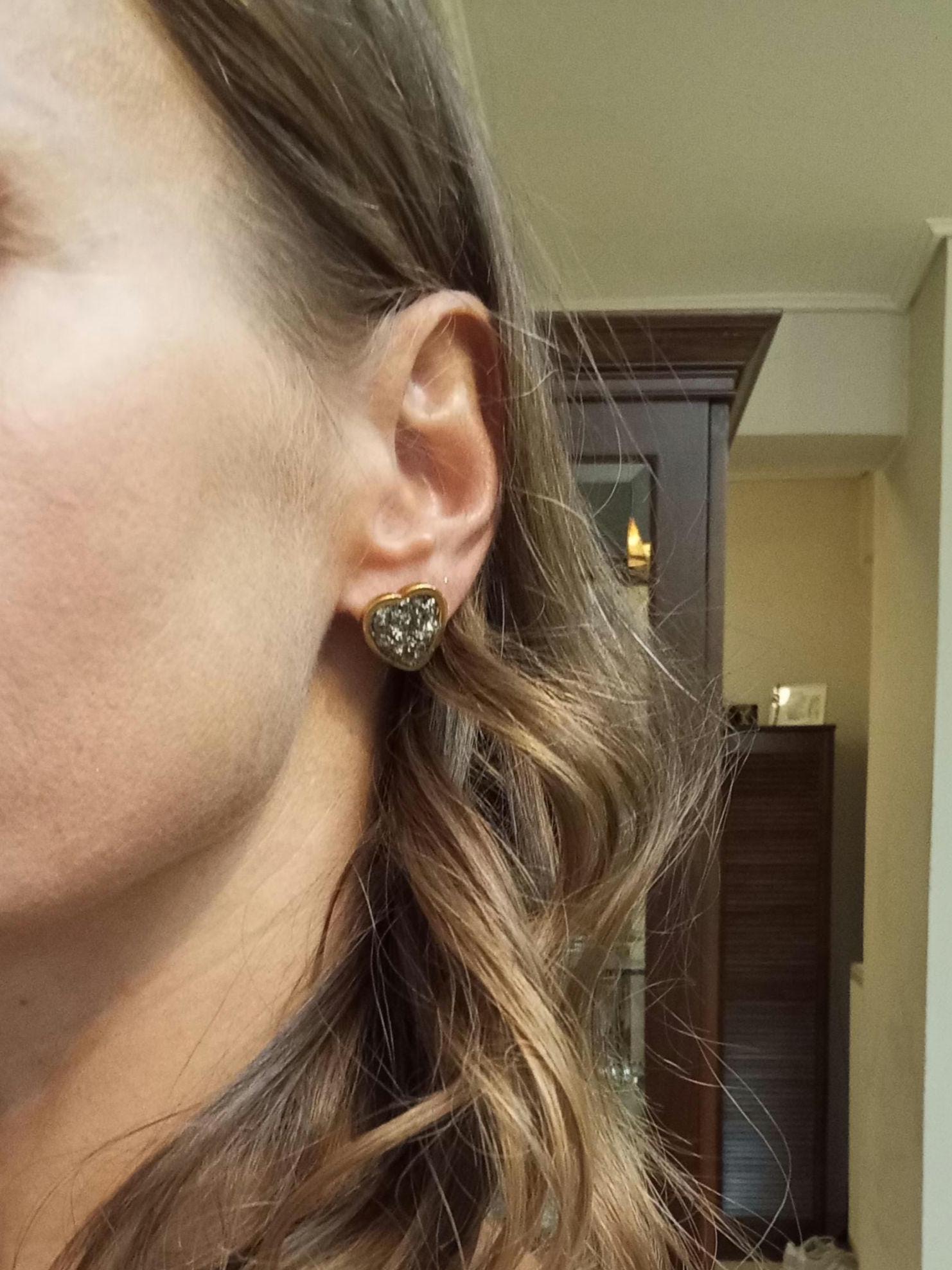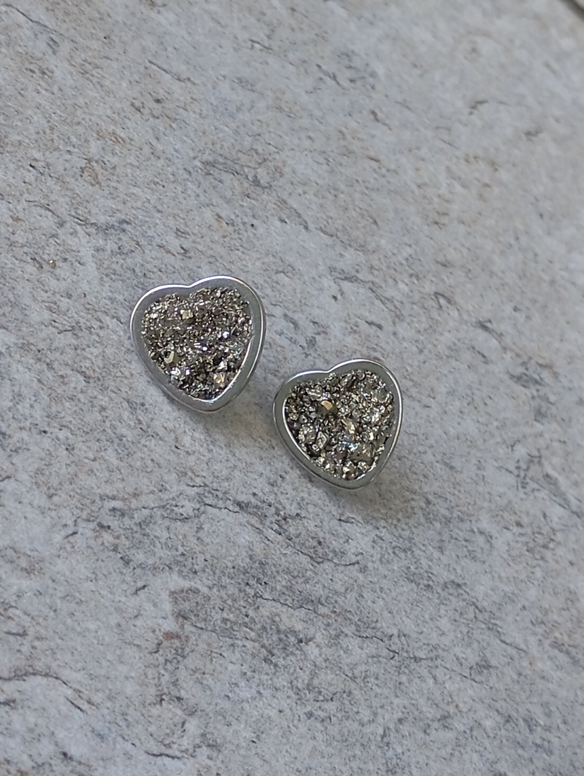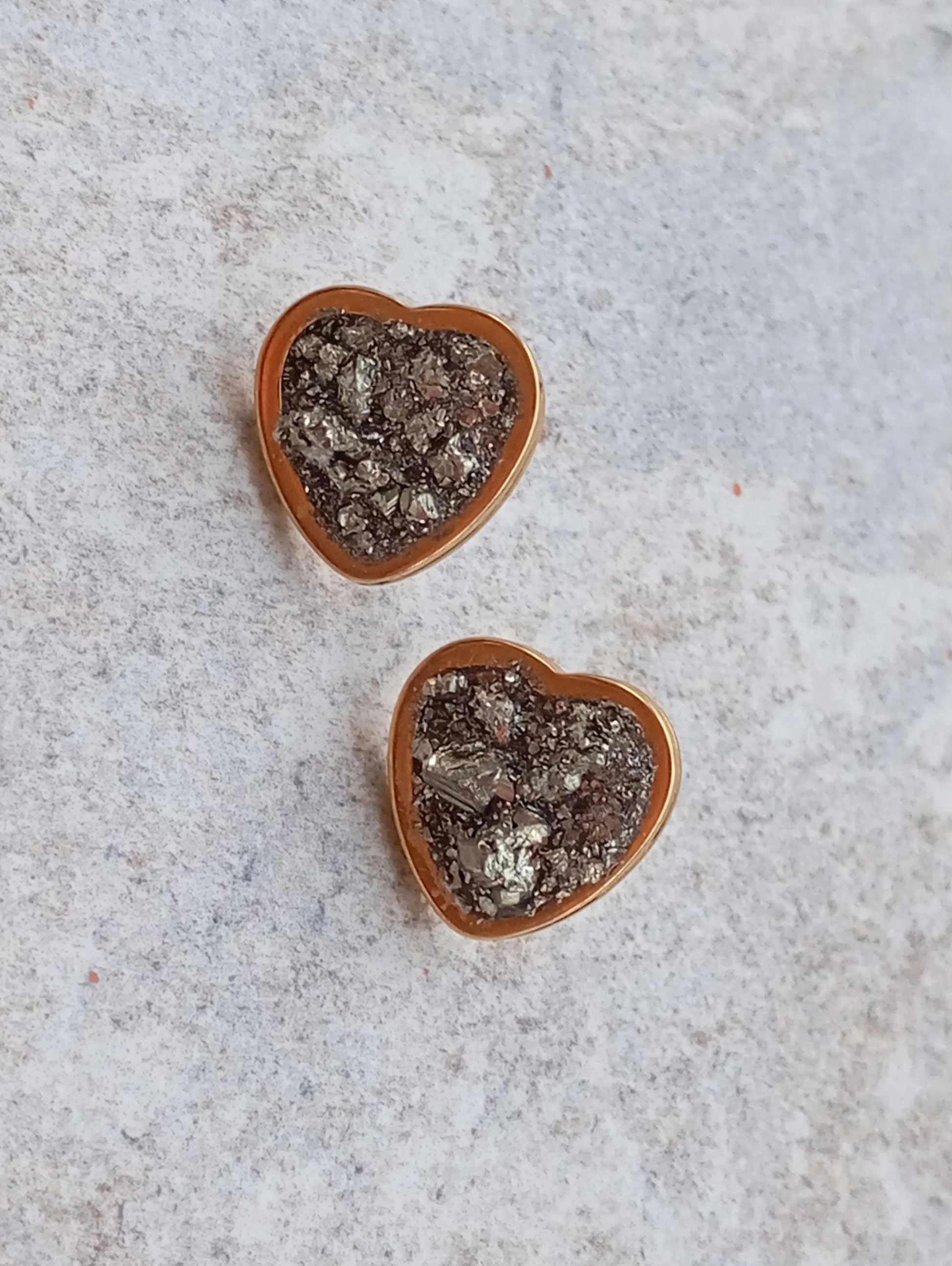 Heart Pyrite Studs Earrings, wealth stone, Healing, protection, raw Iron Pyrite cubes gemstone earrings, handmade dainty earrings