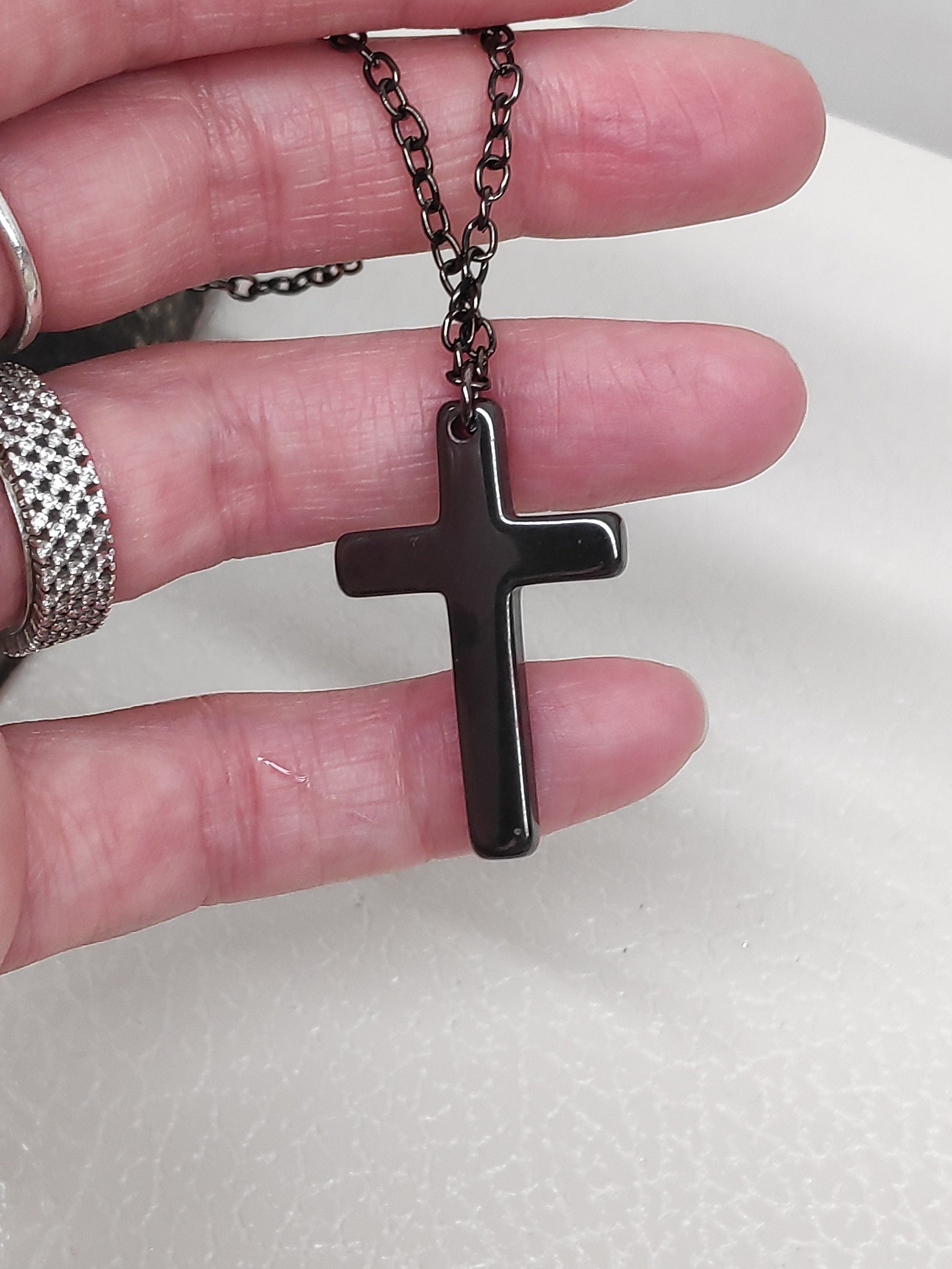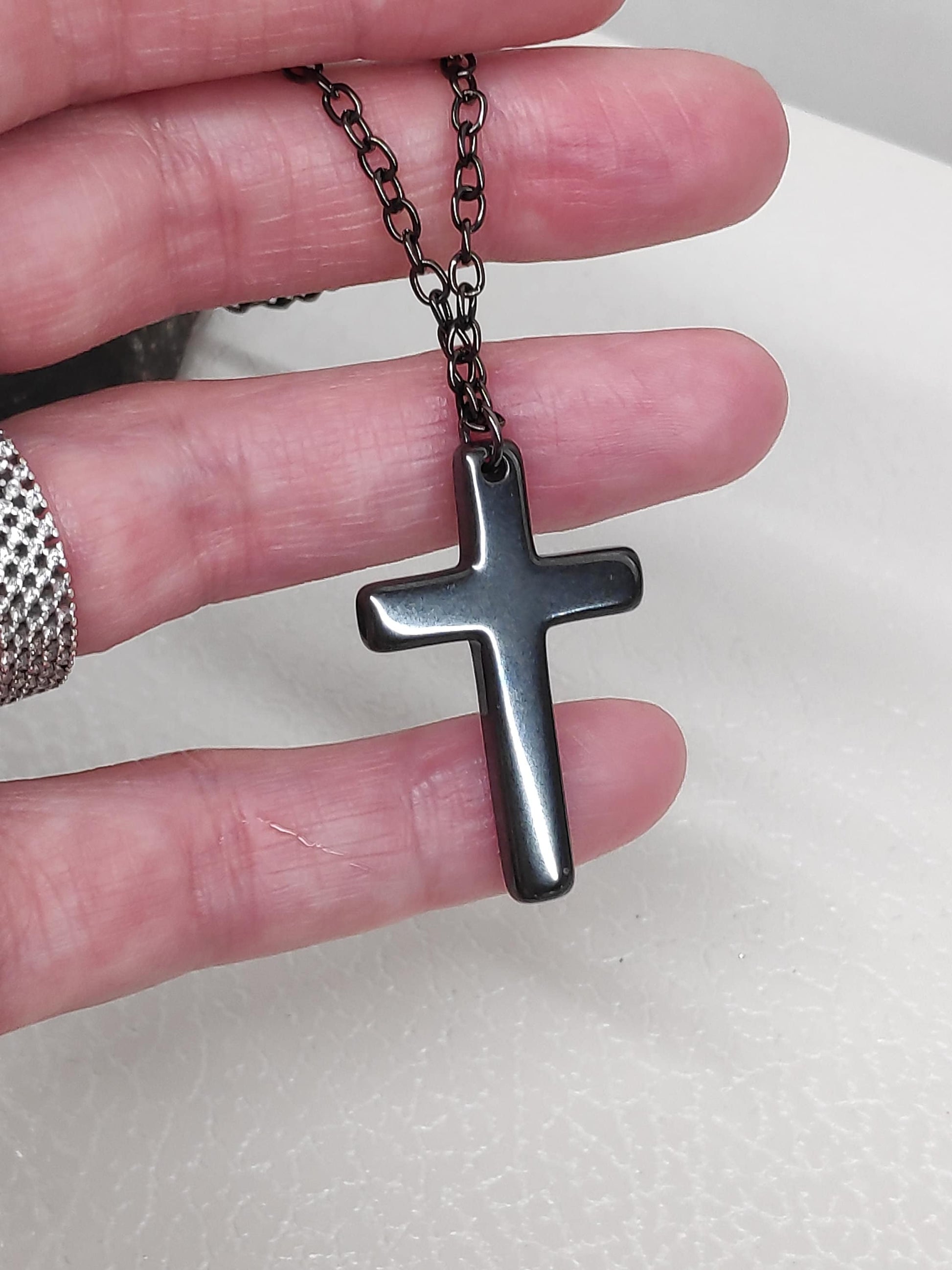 classic cross necklace with Natural Hematite cross and stainless steel chain hematite colour, beautiful Christian gift for Believers. gemstone, handmade, catholic cross pendant.