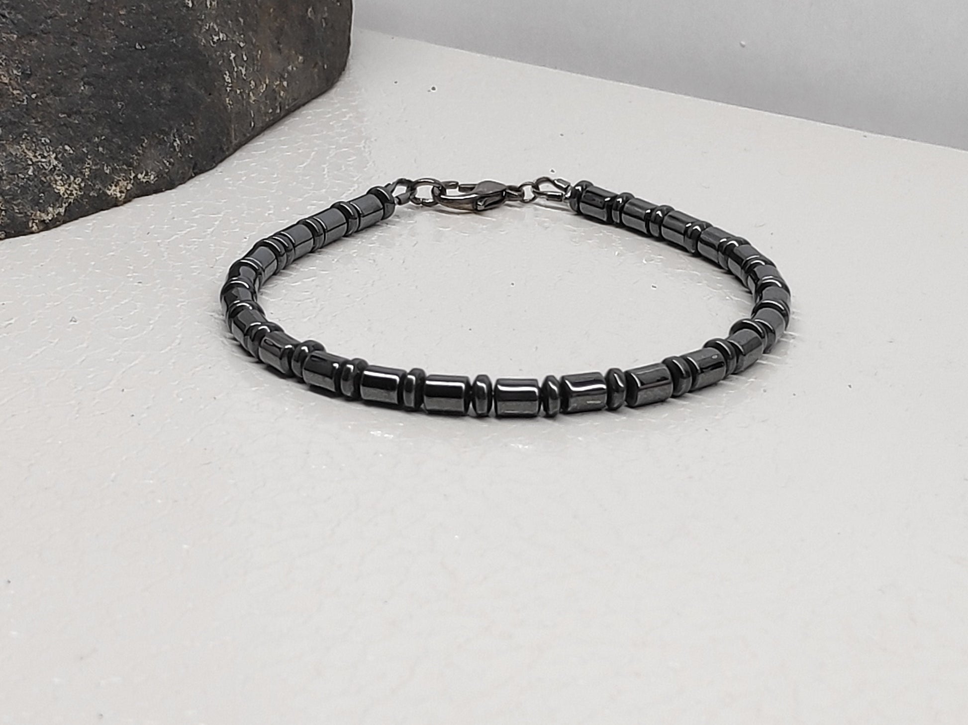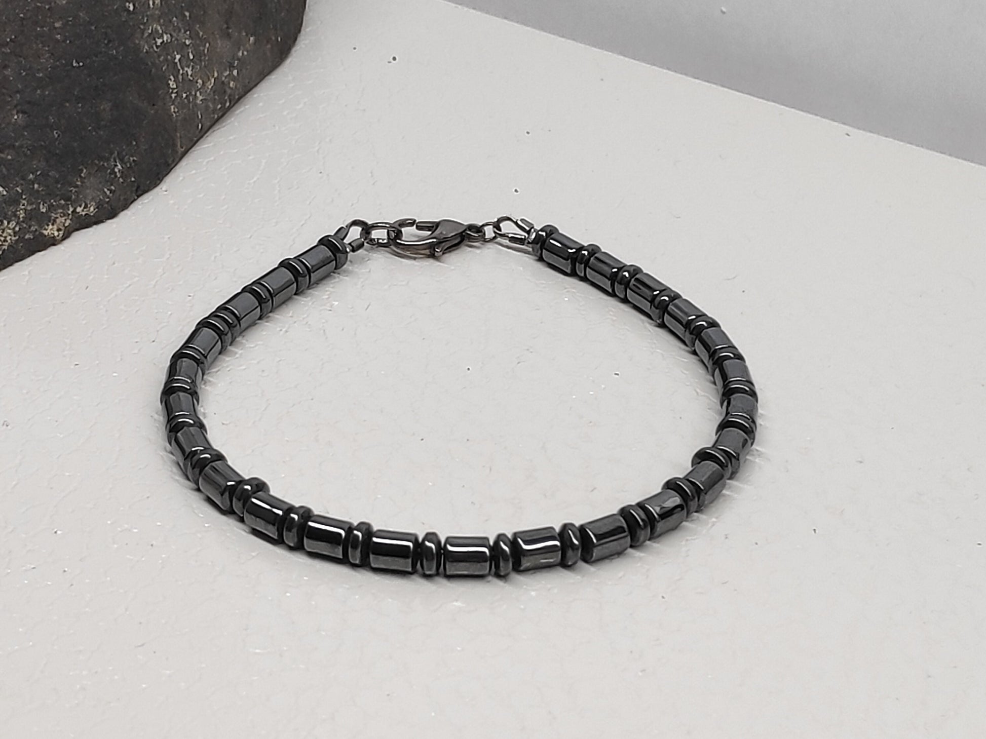 Hematite Tubes Beads Bracelet Men, Hematite bracelet Gemstone Bracelet, Healing Energy Grounding Protection Bracelet