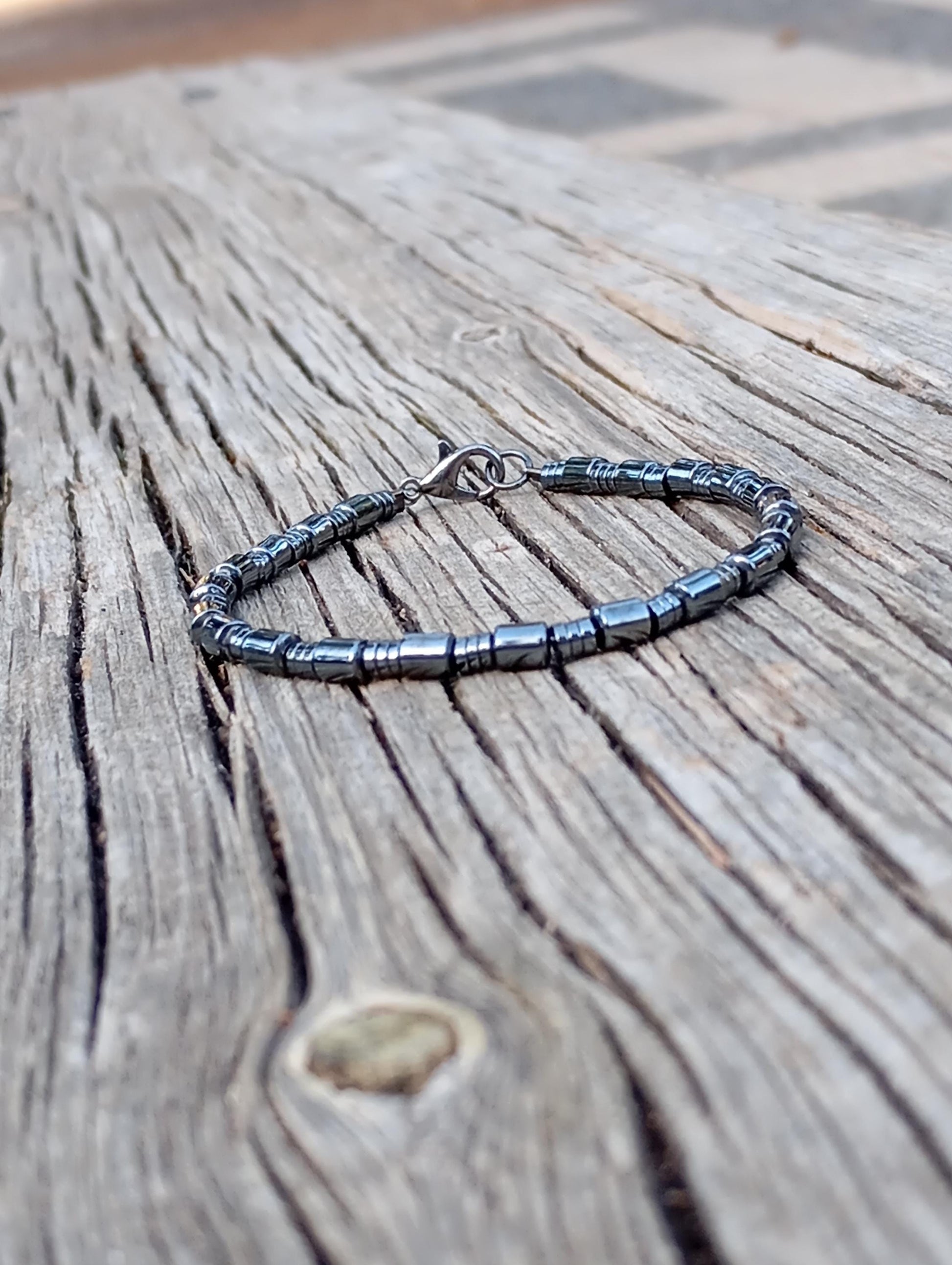 Hematite tubes bracelet men, beaded bracelet, natural Gemstone, Healing, Energy, Grounding, Protection fashion trend, gift for man