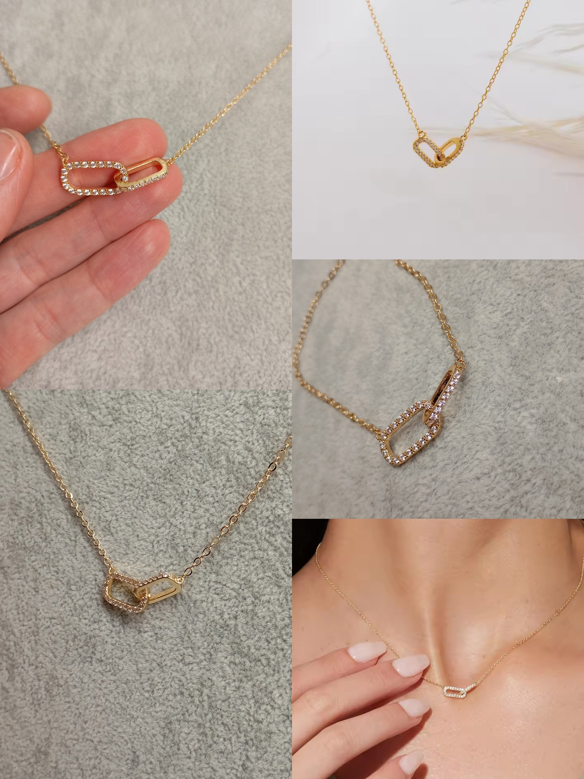 beautiful shiny rhinestone choker necklace for women with double linked rounded rectangular hoops/ double thickened circles, gold plated copper, high quality.