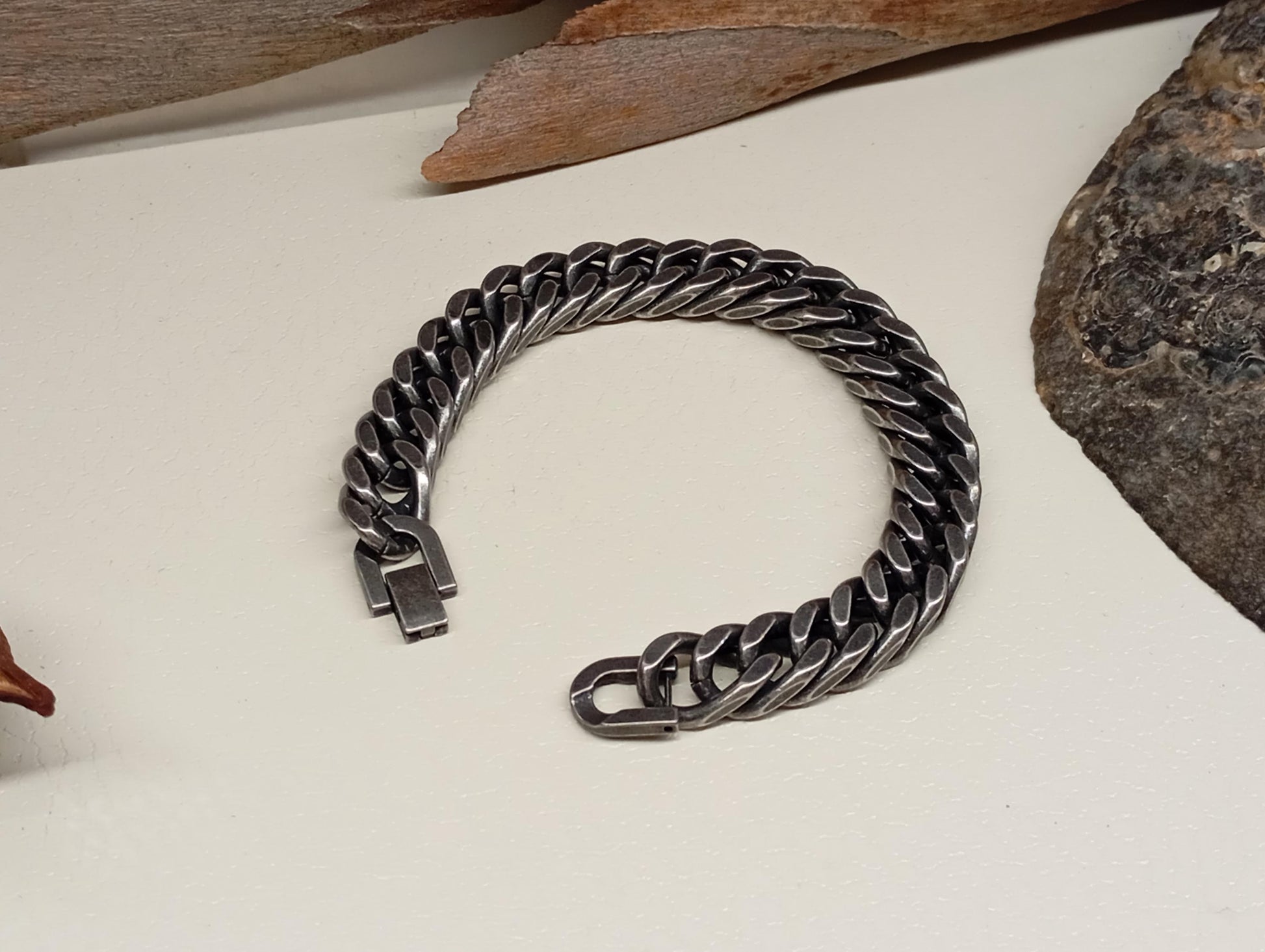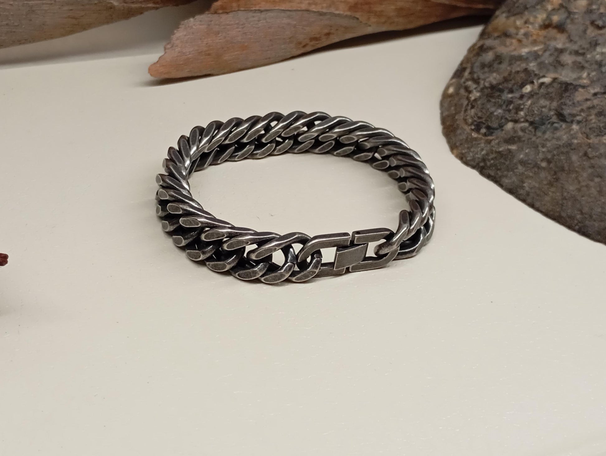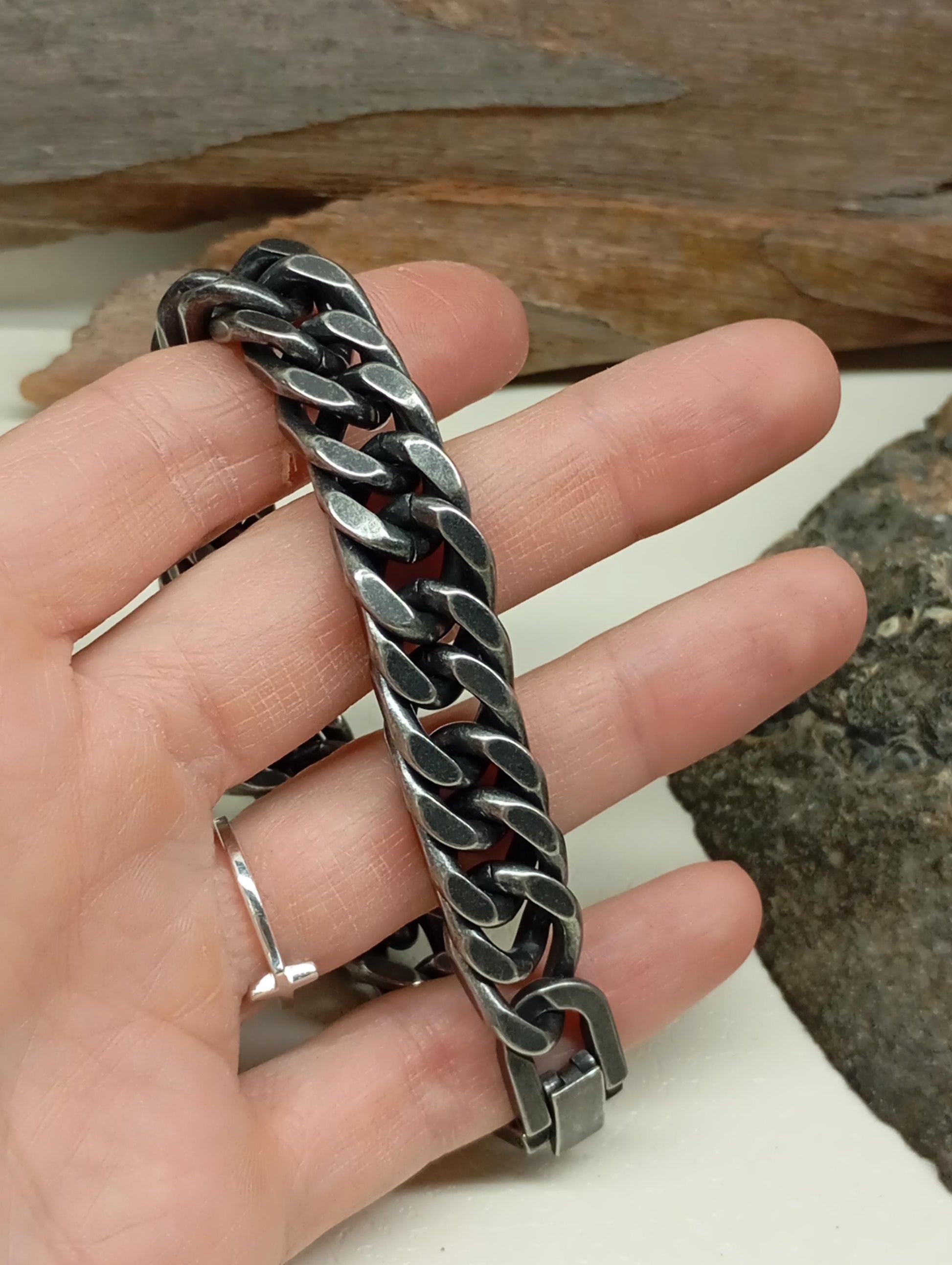Elevate your style with this handcrafted oxidized stainless steel bracelet, featuring a classic Cuban link chain. This chunky and durable piece is perfect for men who appreciate bold accessories with a vintage touch.