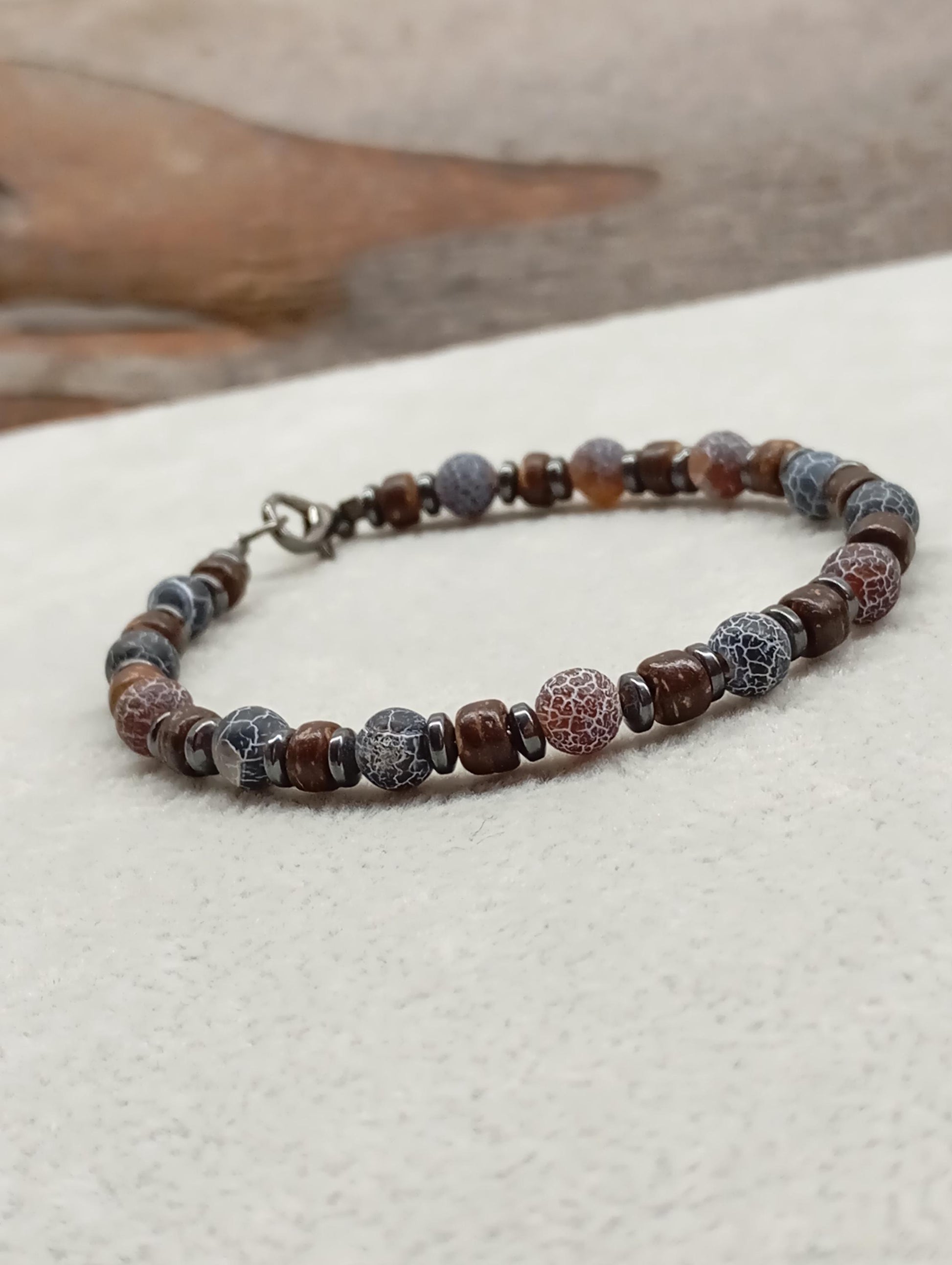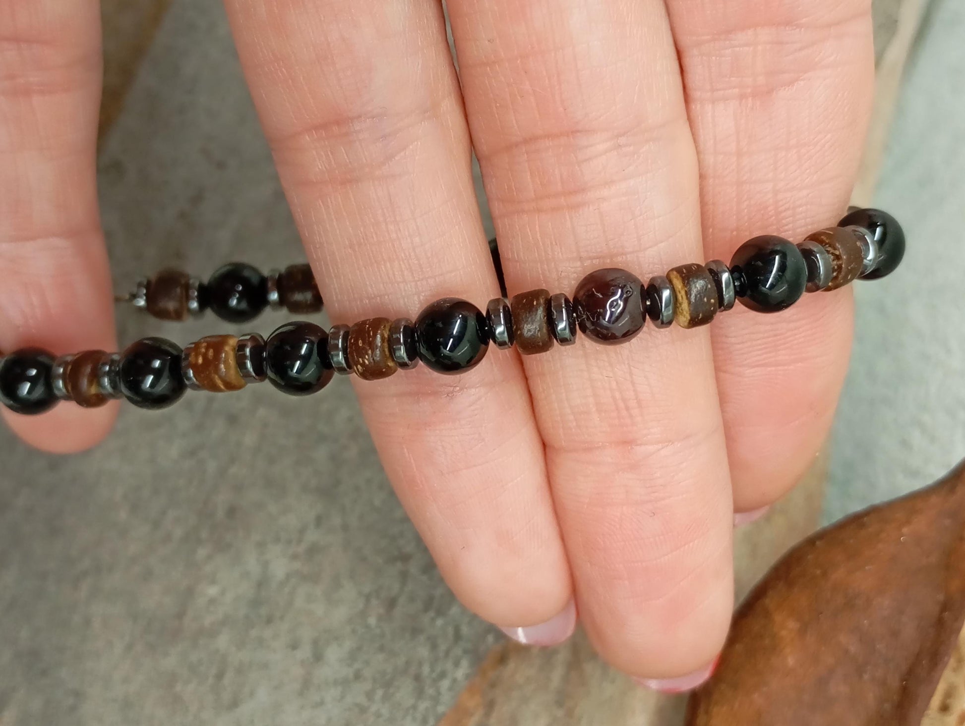 Mens bracelet with Black onyx round beads, hematite and wooden spacers natural Gemstone, Healing, Energy, Grounding, Protection, trendy