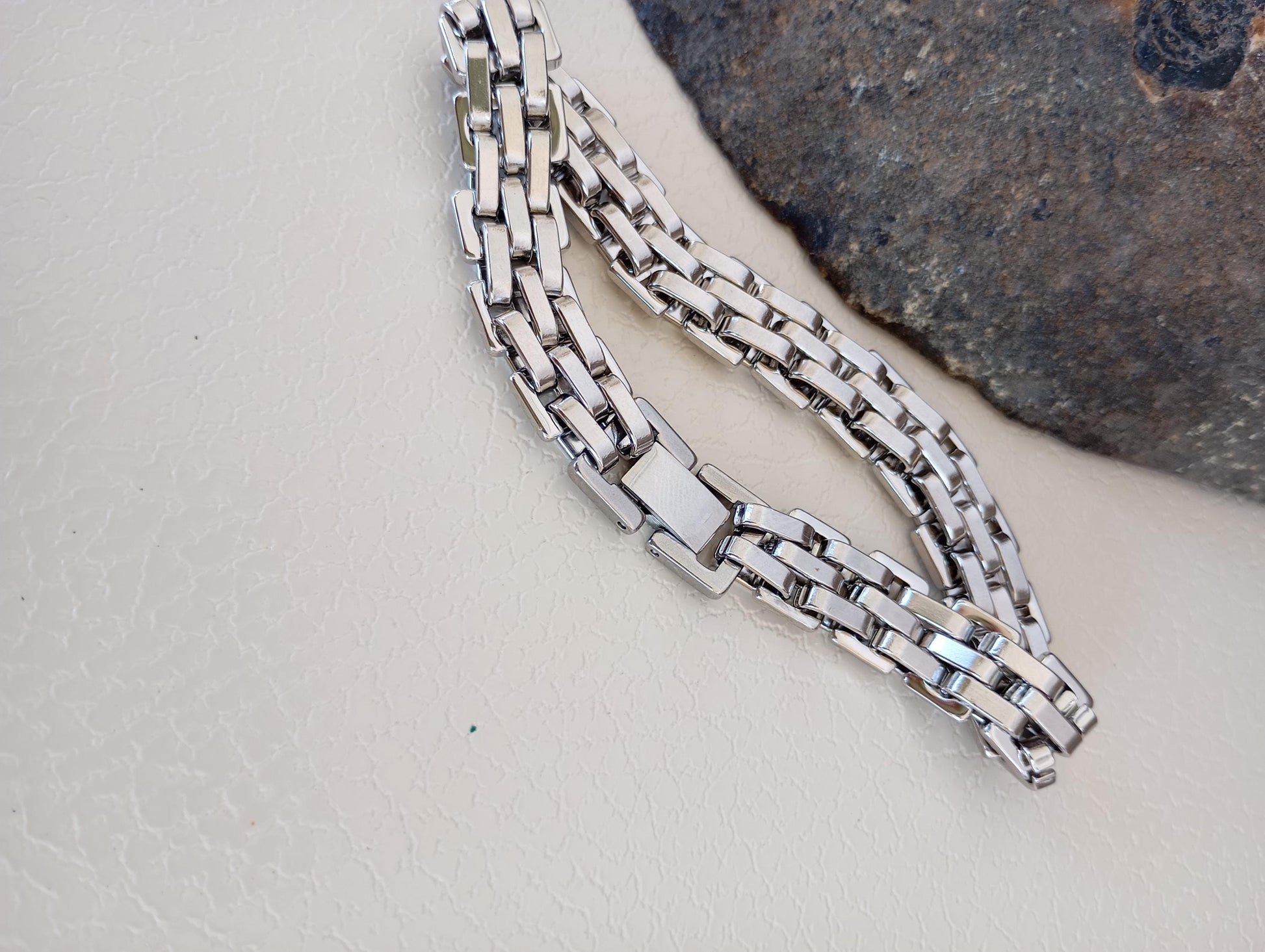 Men’s Stainless Steel Link Bracelet – Watchband Style Thick Chain