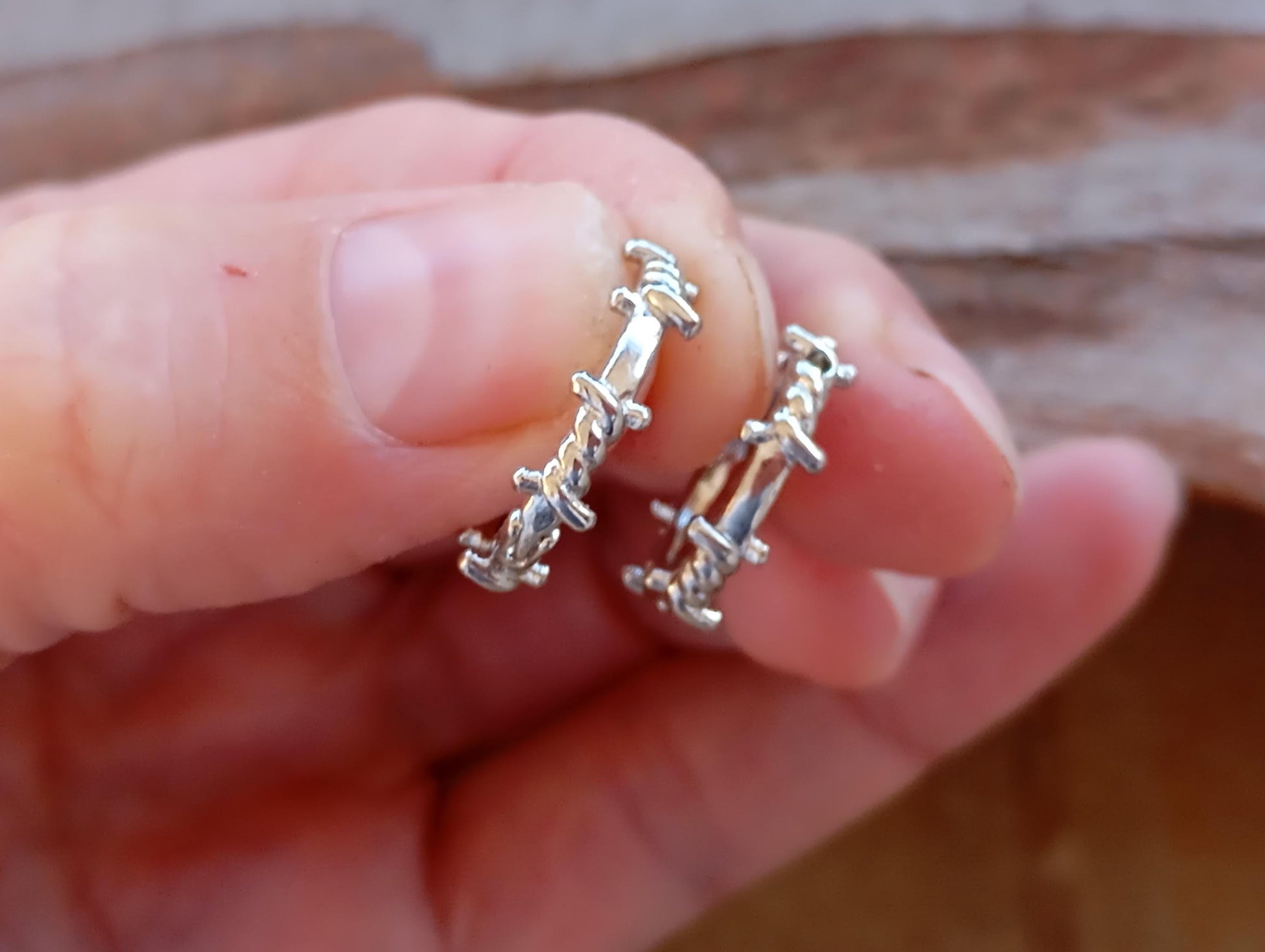 Mens Thorns hoops silver colour for men or women , Punk hippie Piercing Round ring metal simple circle earrings