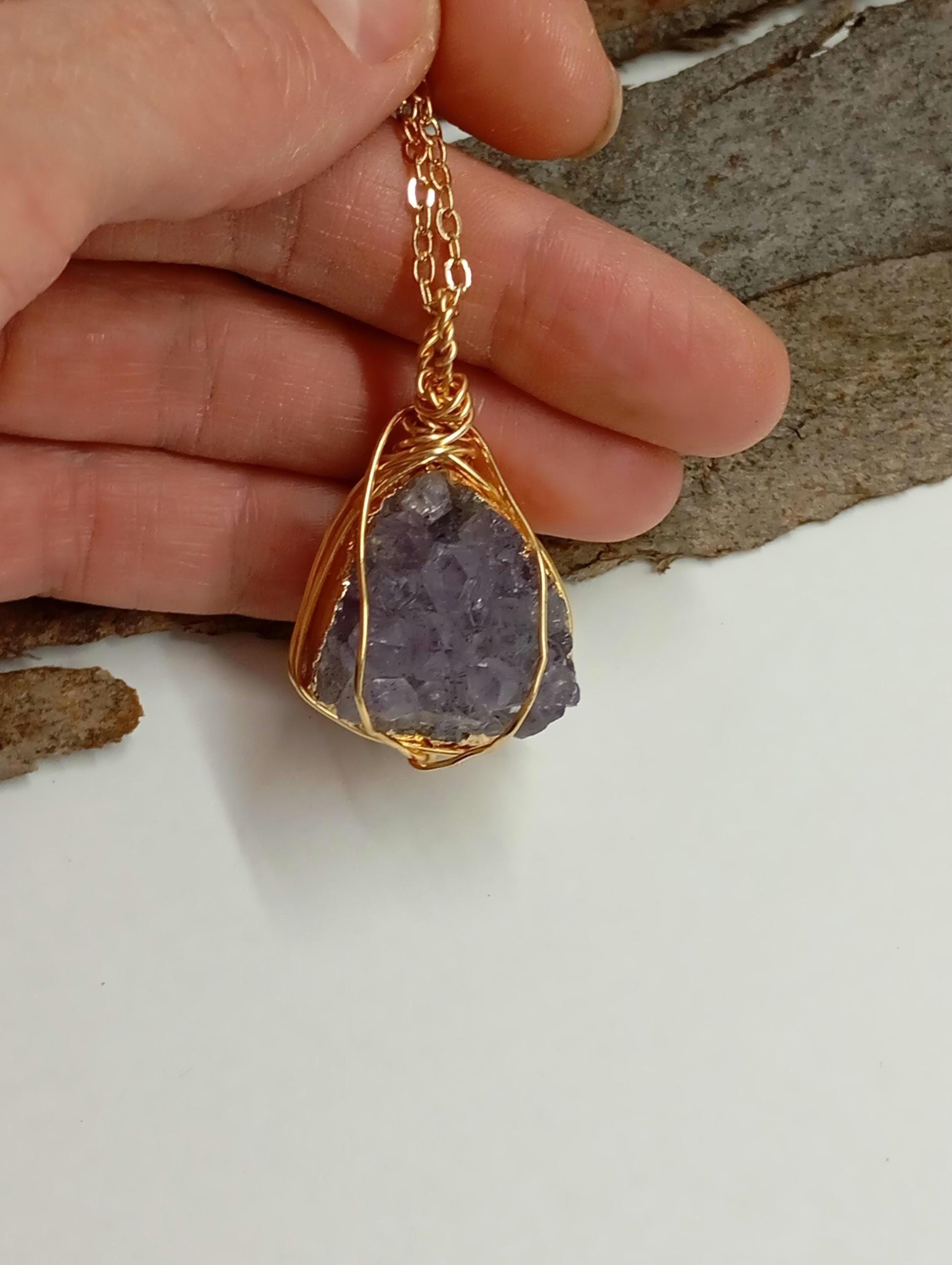 Authentic raw amethyst crystal beautifully wrapped with gold plated copper wire. handmade by me.
