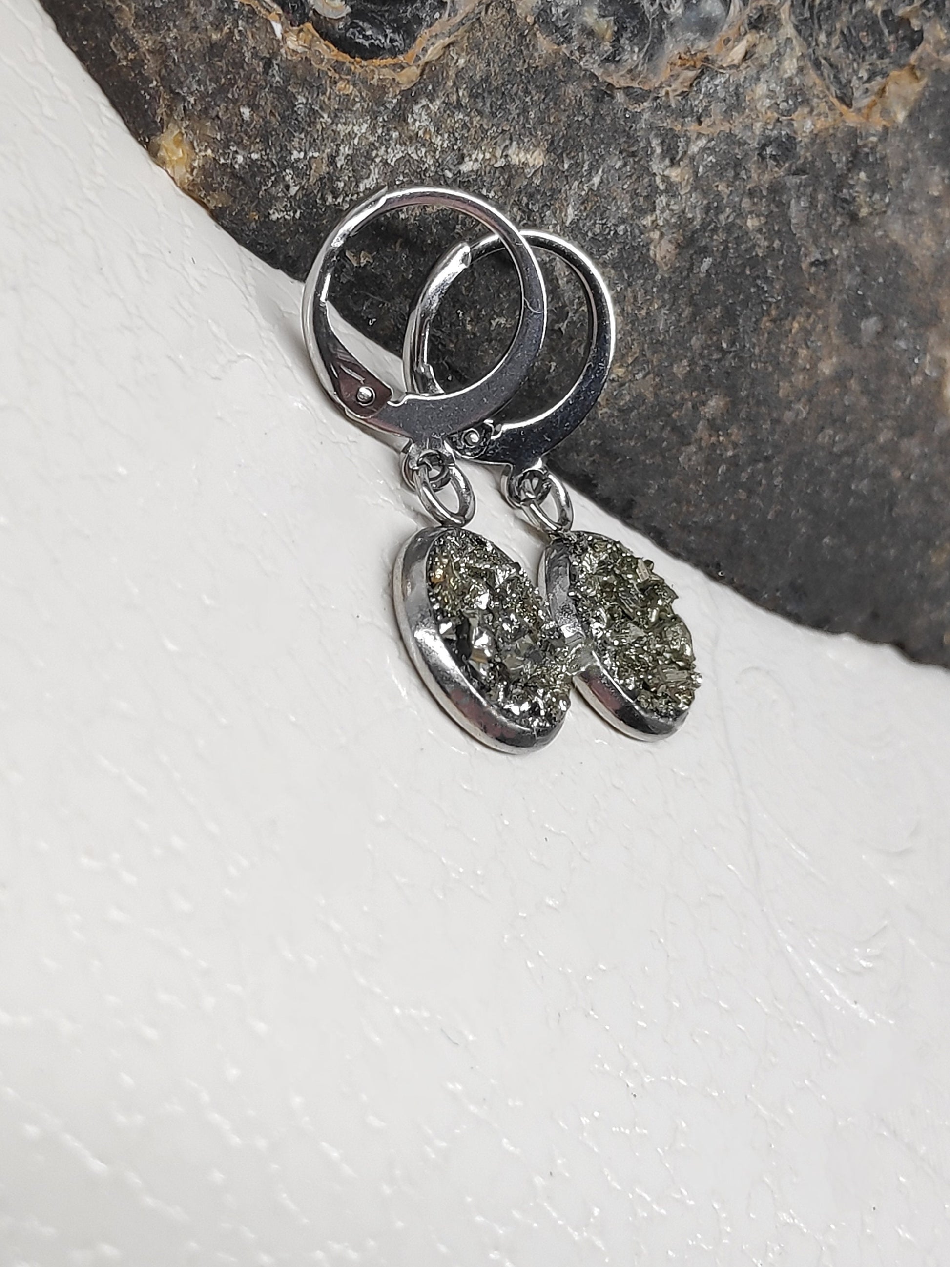 Natural Raw Iron Pyrite Cluster Cubes Earrings, Stainless steel, gold plated, Handmade Healing Protection Bohemian Trendy Dainty Elegant Gem