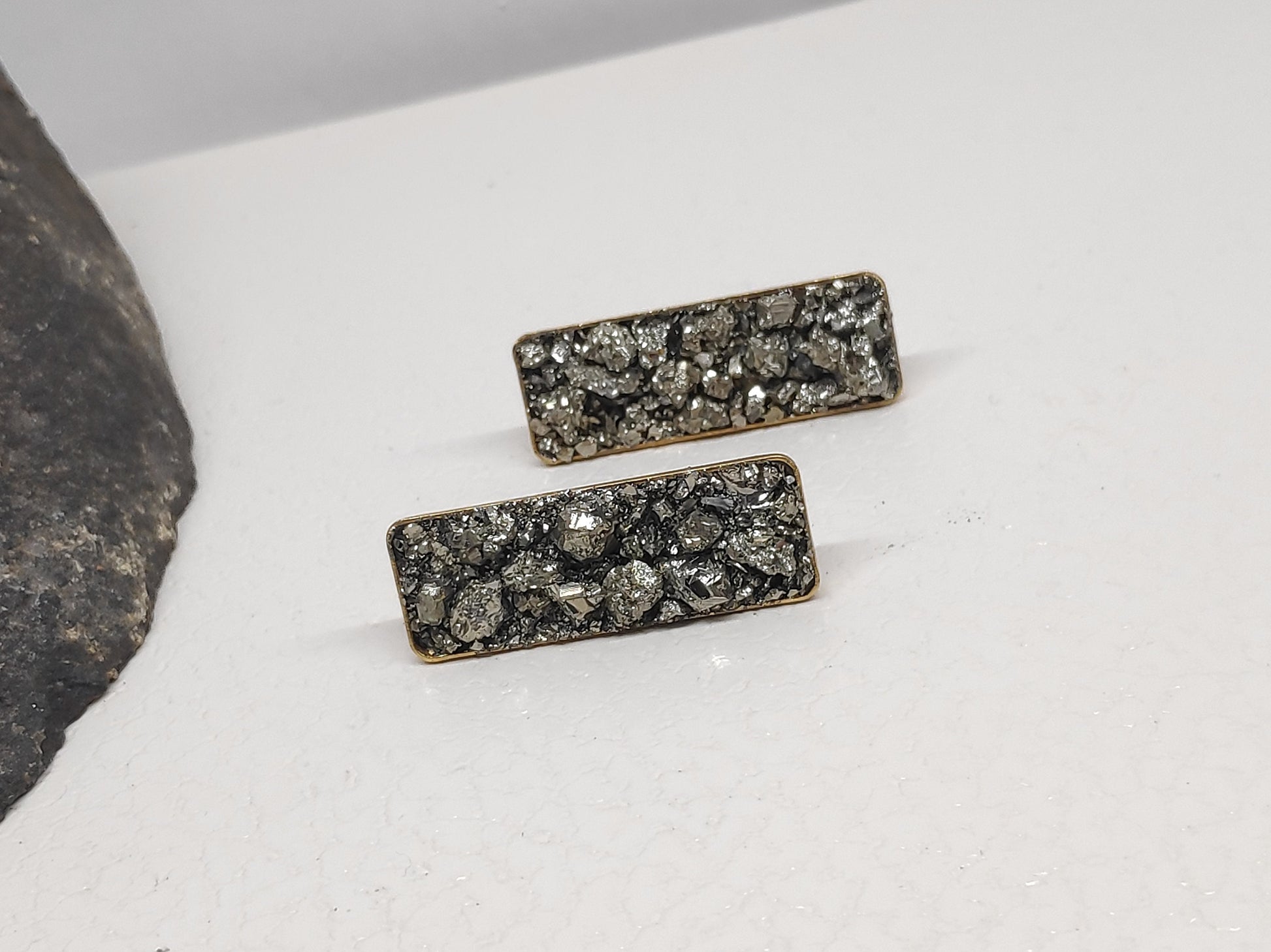 Pyrite Rectangular Studs Earrings, Wealth stone Healing Protection earrings, raw Iron Pyrite earrings, handmade, dainty, gemstone