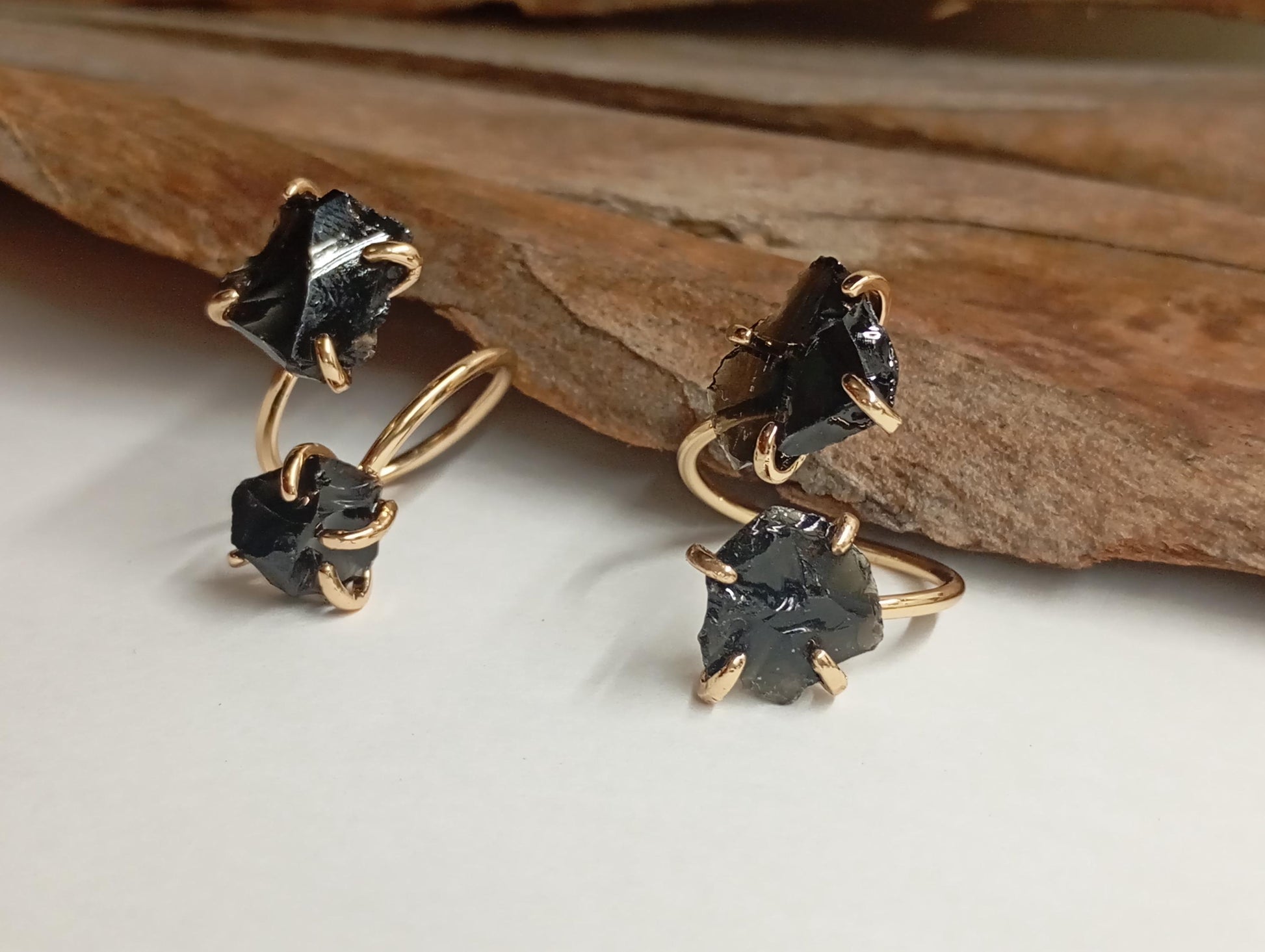 Dainty adjustable with two black obsidian stones open finger ring , fashion woman's accessories, reiki, healing, protection, antique, elegant ring , stunning, gift for woman