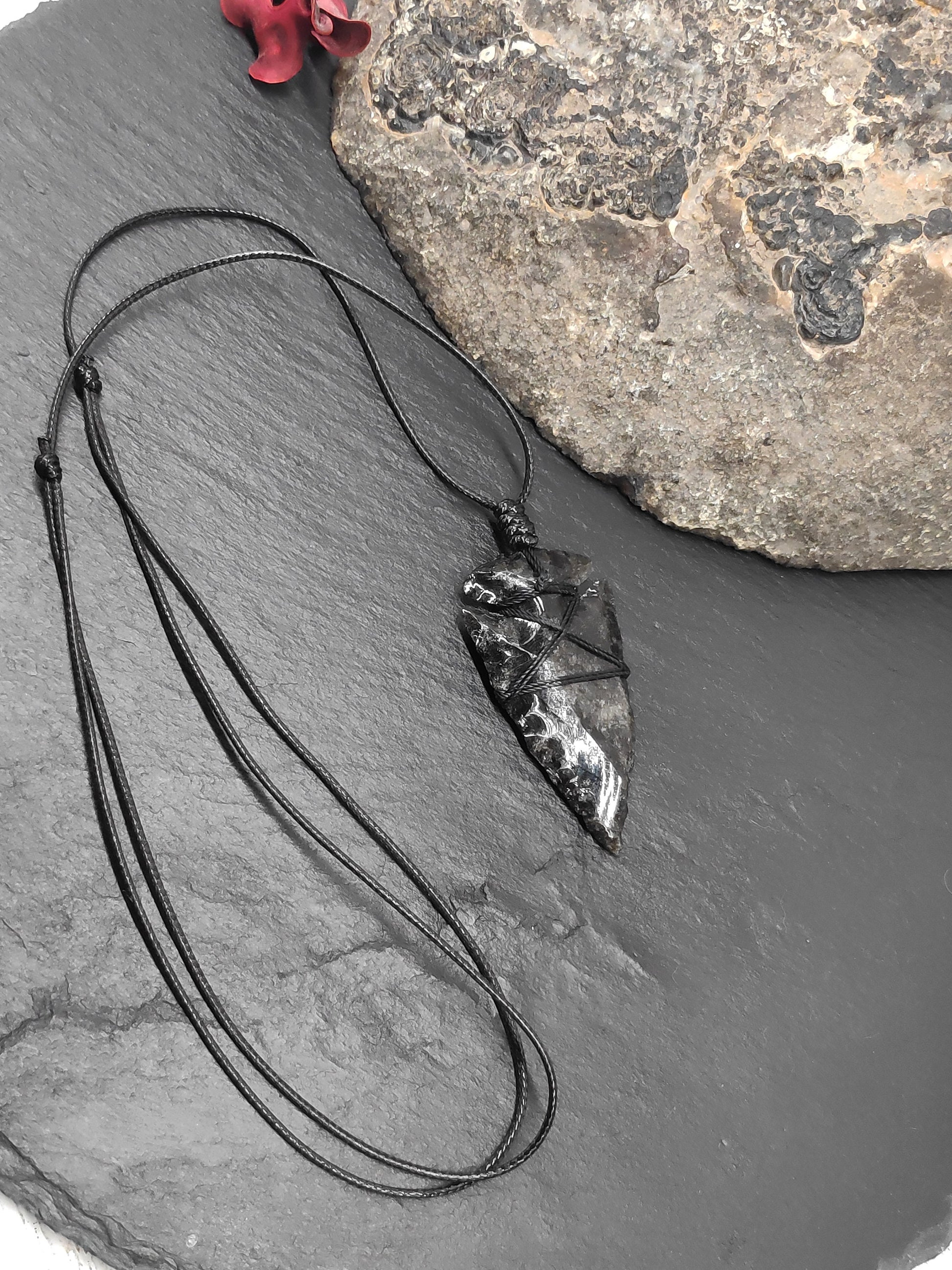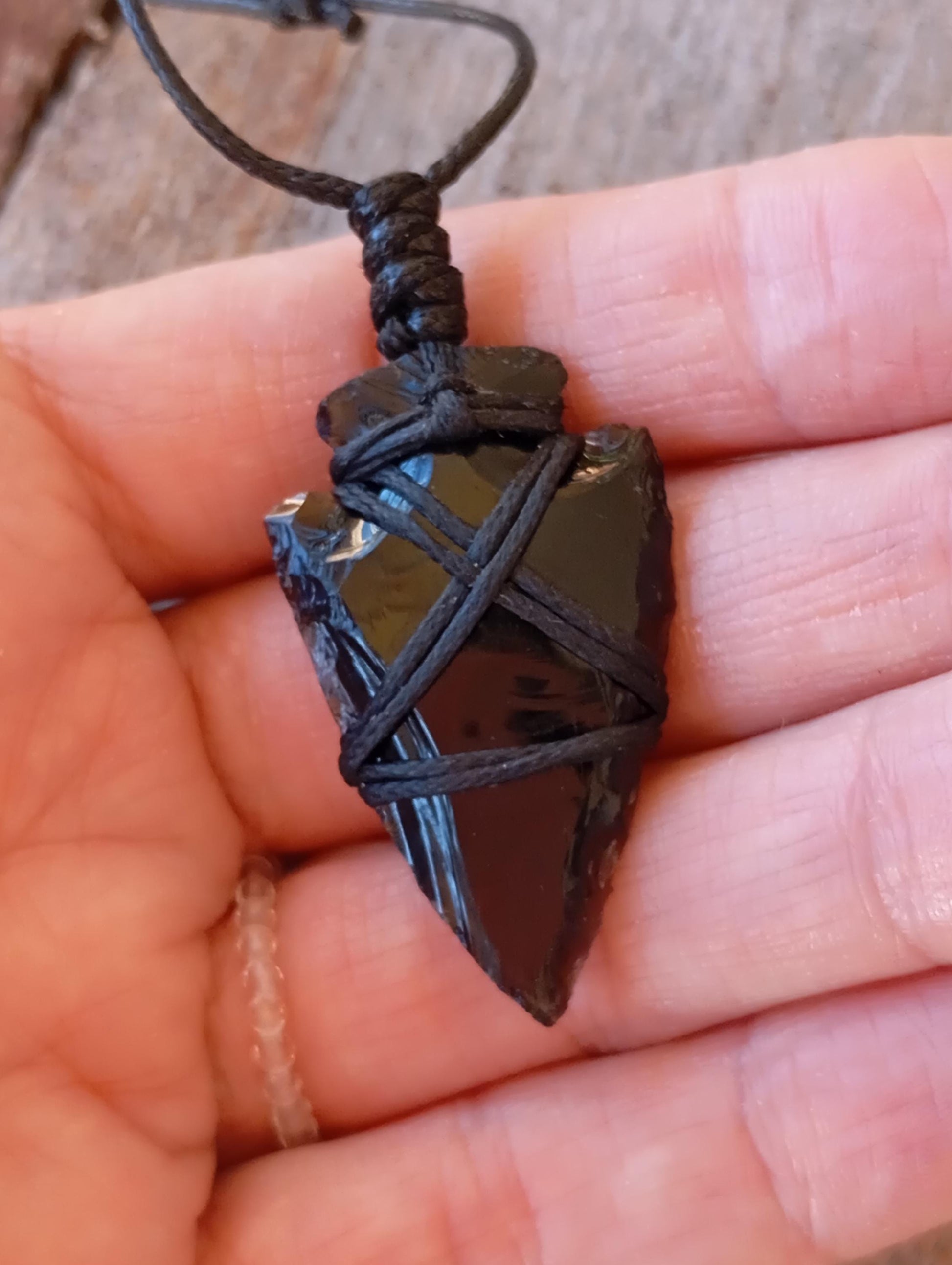Unisex necklace with authentic raw black obsidian arrowhead crystal, carved crystal obsidian pendant necklace. Protection from negative, energy cleance, grounding, healing crystal. large crystal raw arrowhead pendant, Obsidian jewelry, Handcrafted jewelry.