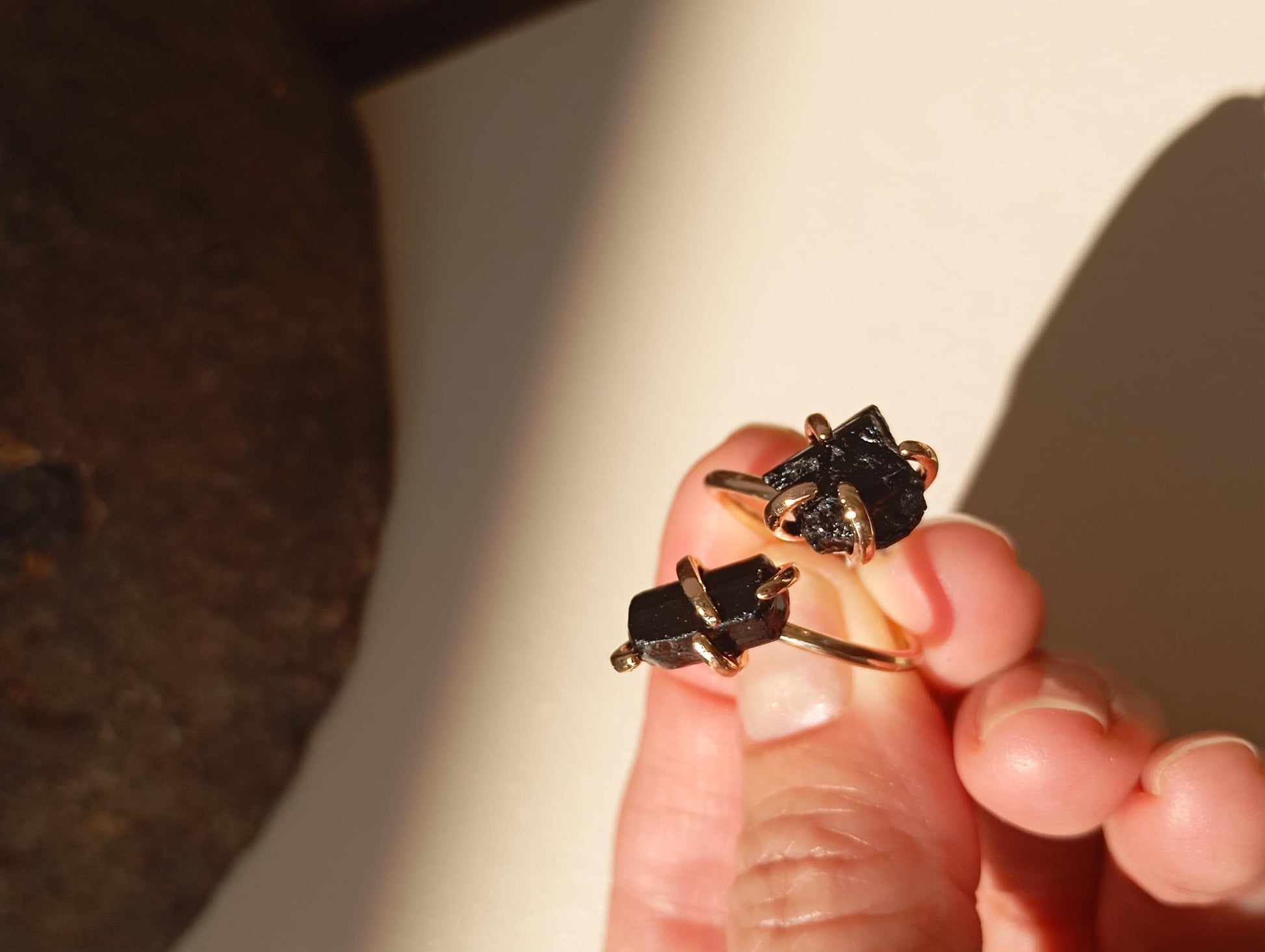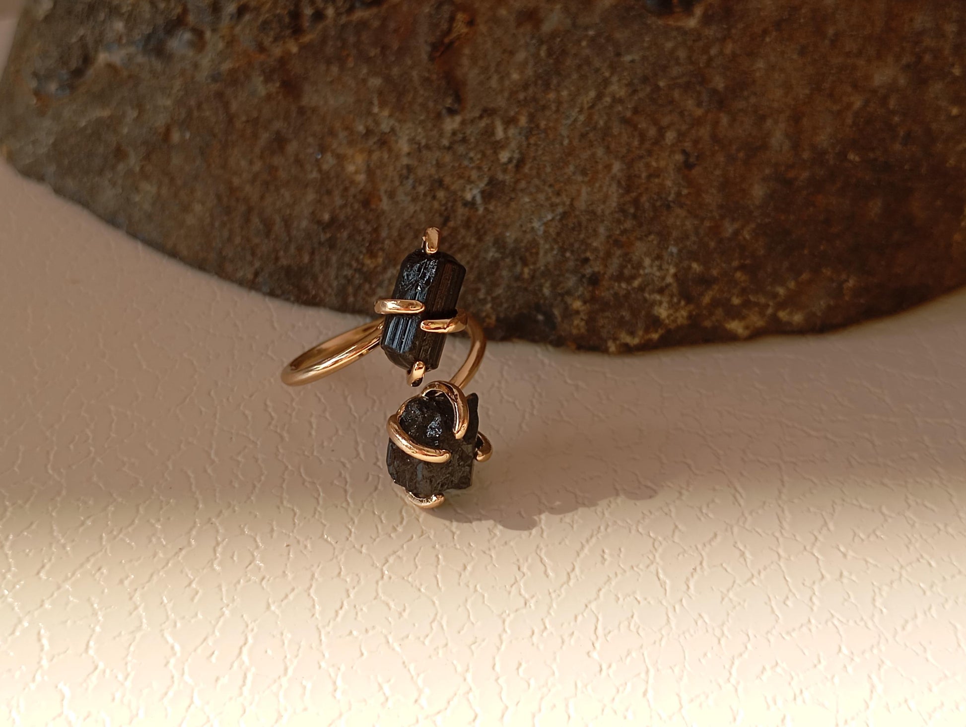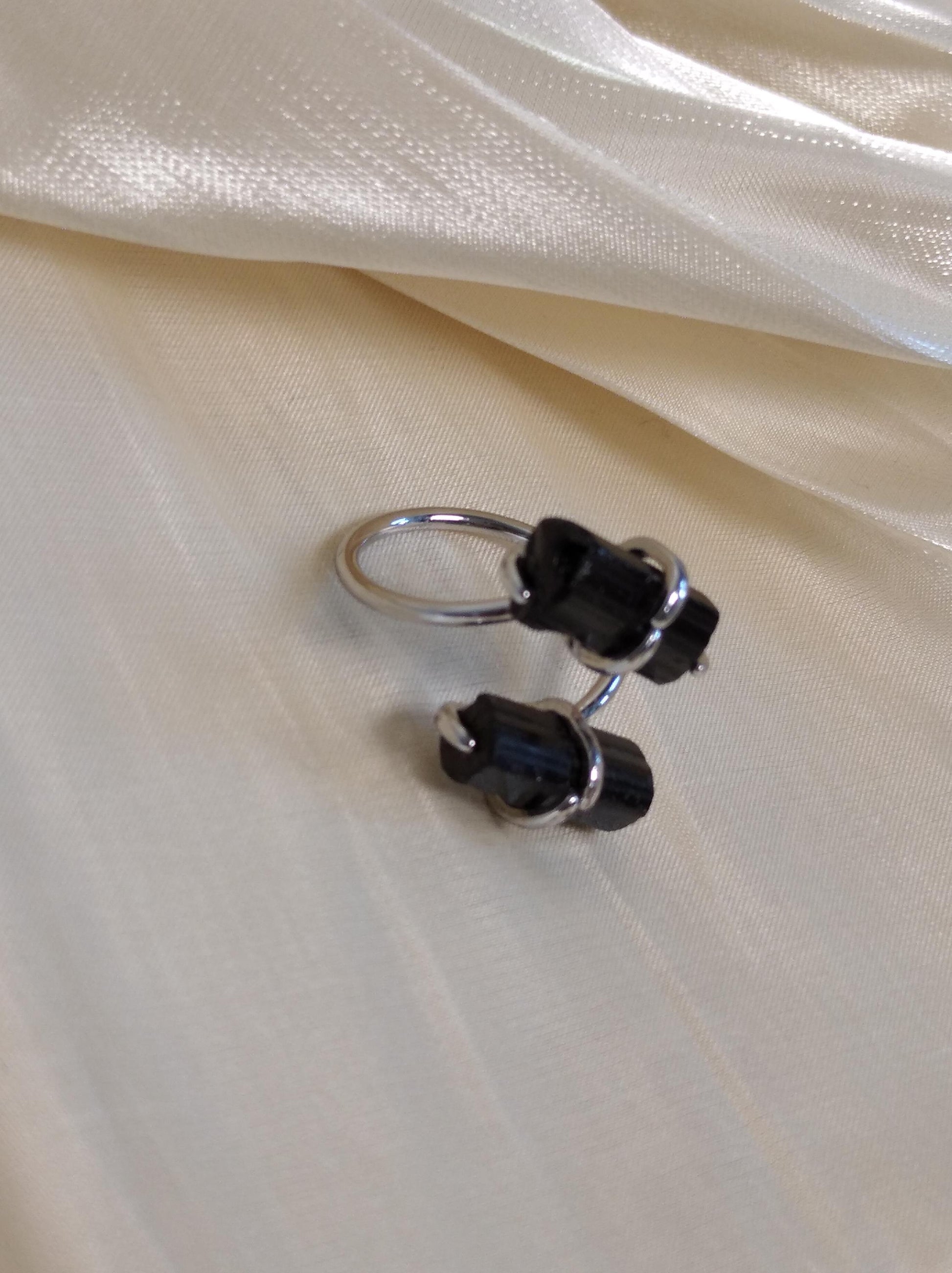 Dainty adjustable with two black tourmaline stones open finger ring , fashion woman's accessories, reiki, healing, protection, antique, elegant ring , stunning, gift for woman