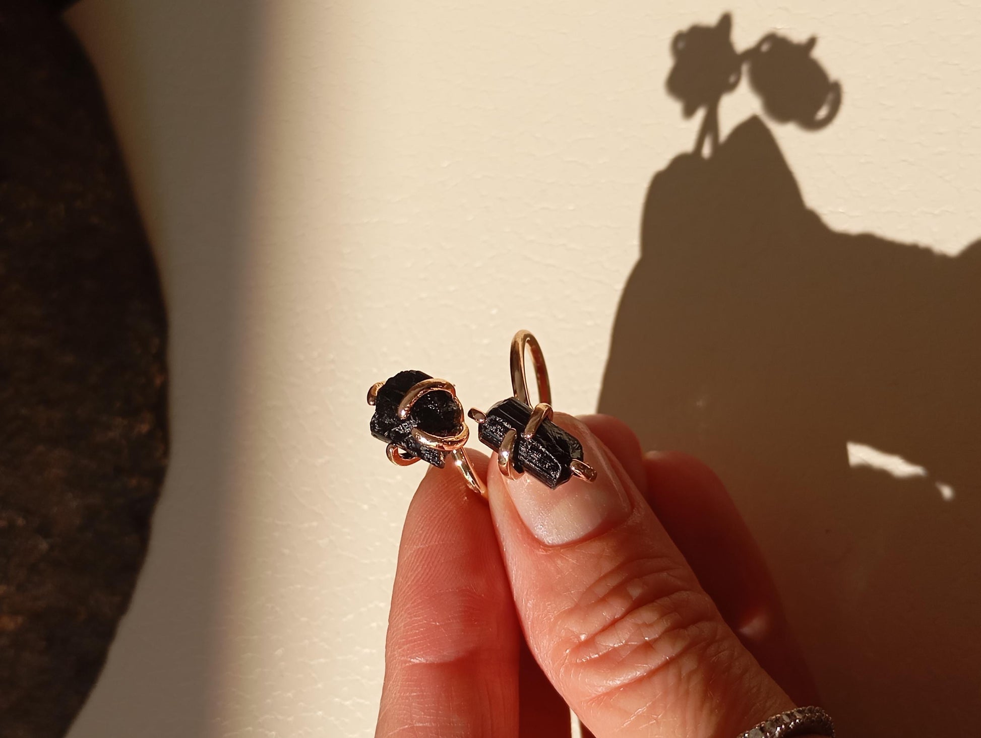 Raw black tourmaline adjustable finger ring in silver or gold, gemstone, healing protection, mascot, fashion, wedding,elegant,gift for women