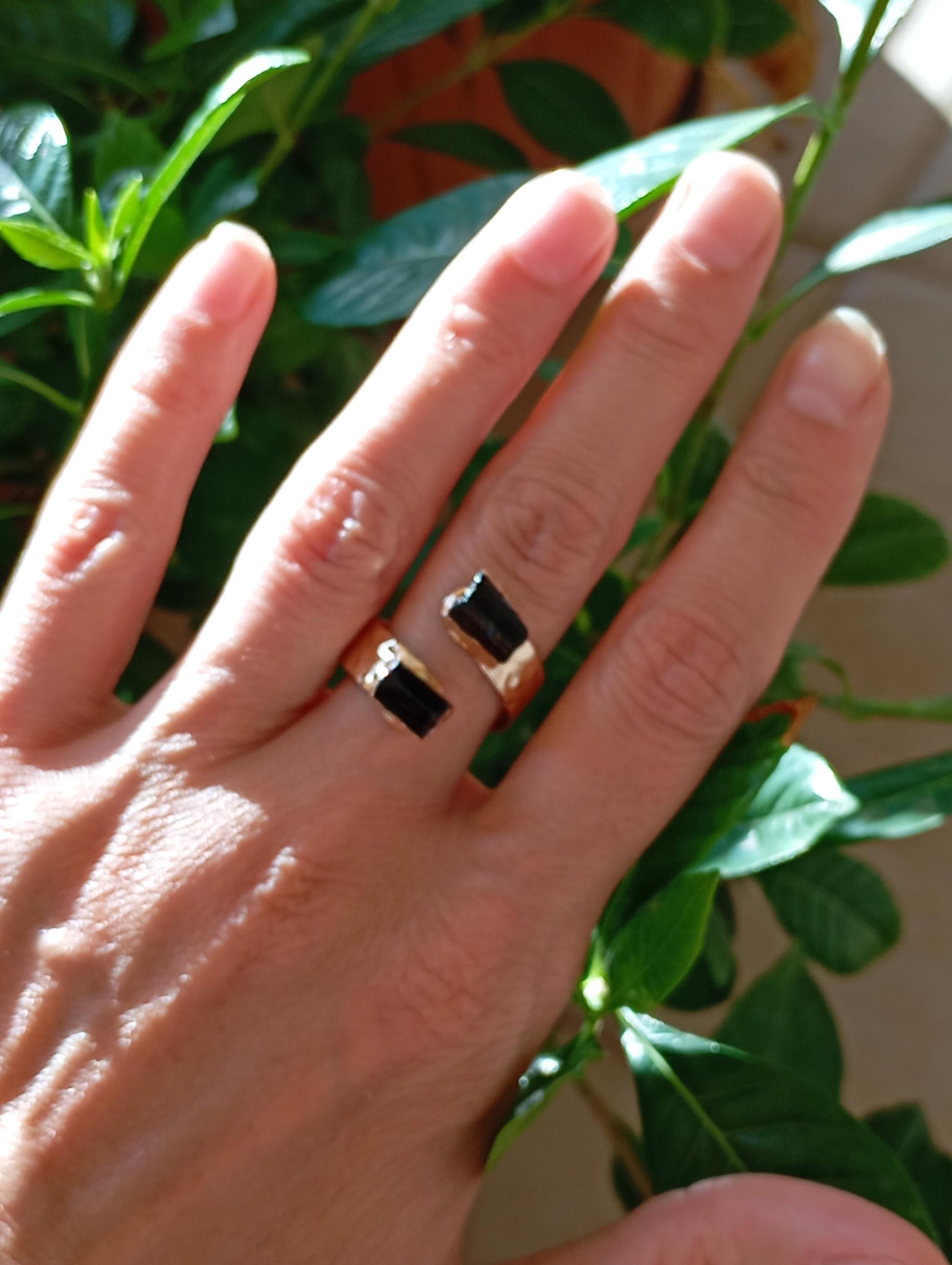 Dainty adjustable open finger ring with raw black tourmaline, fashion woman's accessories, reiki, healing, protection, antique, elegant ring , very beautiful friendship gift