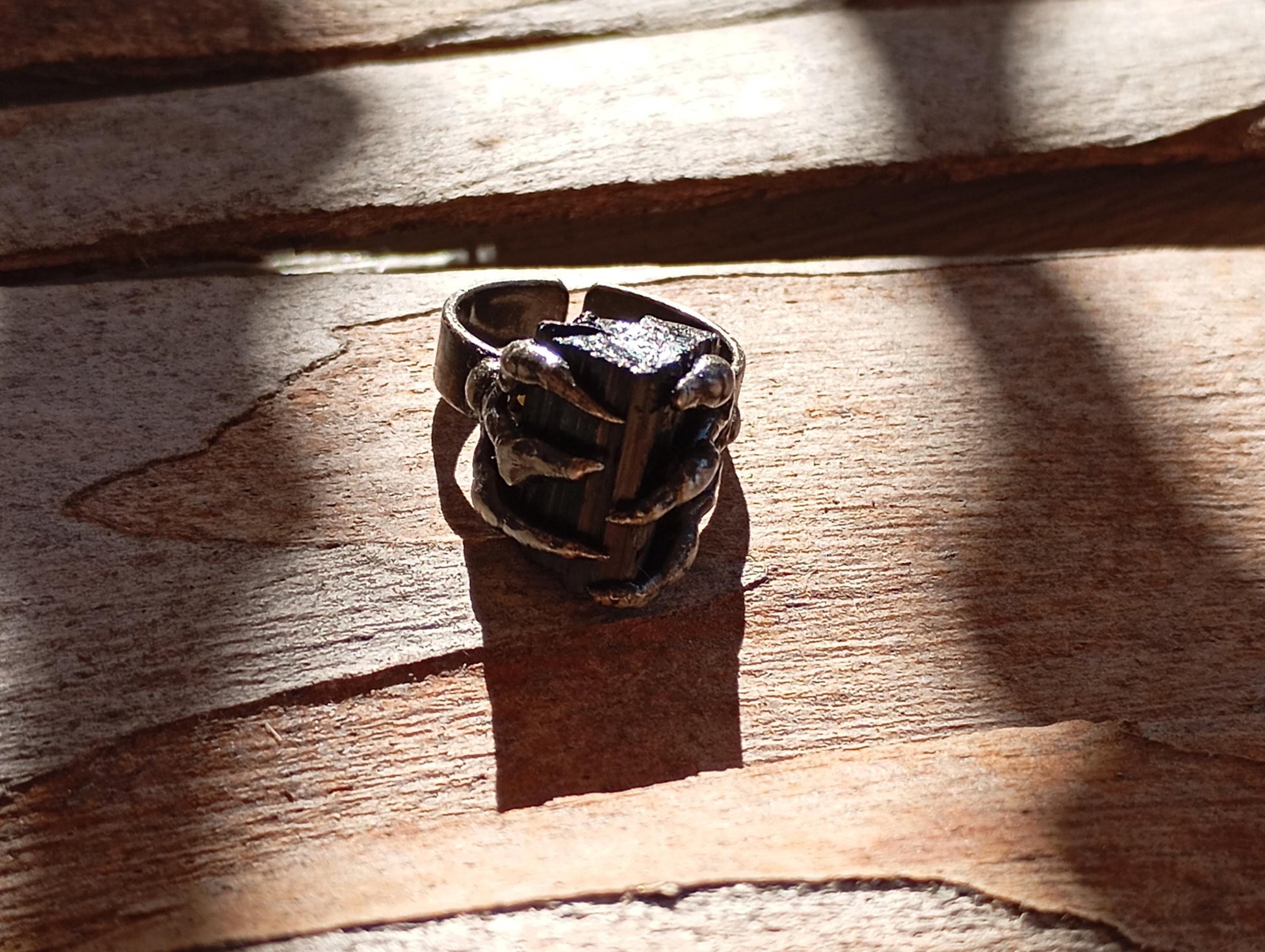 Raw Black Tourmaline claws ring, adjustable finger ring, gemstone,Reiki, antique bronze,retro,gothic evil eye protection stone,mascot,amulet