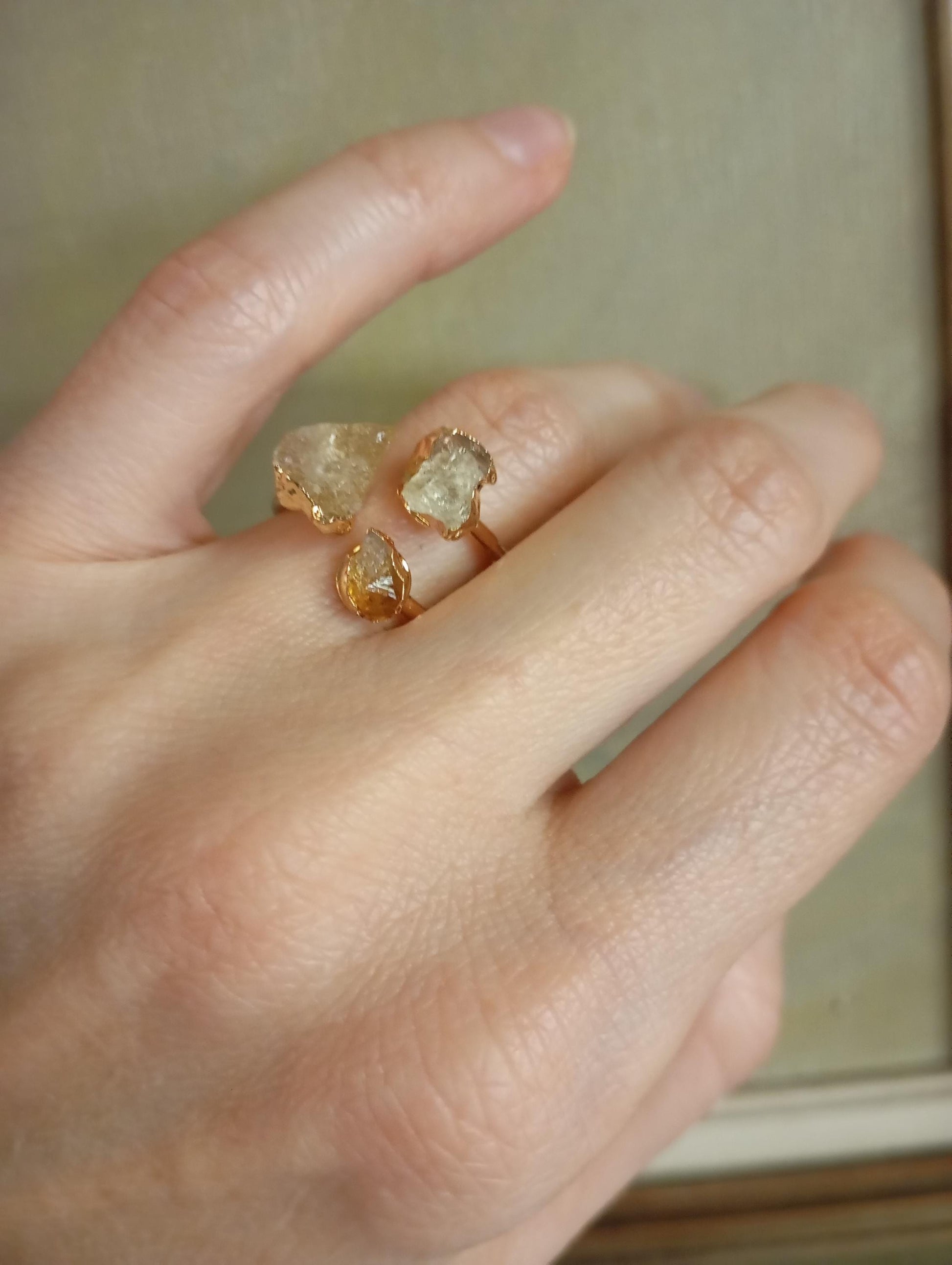 Dainty adjustable finger ring with three gold edge citrine stones , exquisite, trendy woman's accessories, reiki, healing, protection, antique, elegant ring , stunning, gift for woman