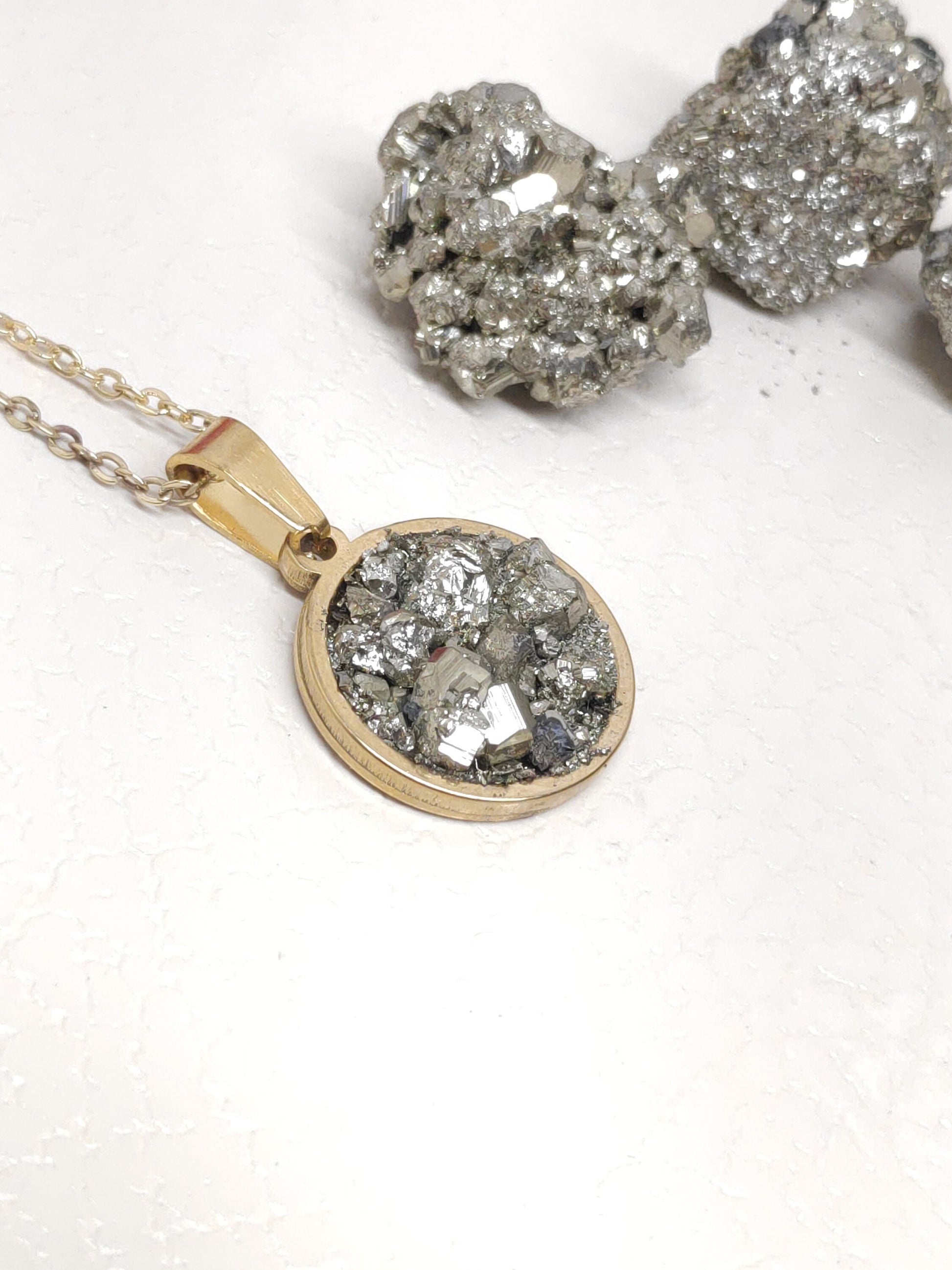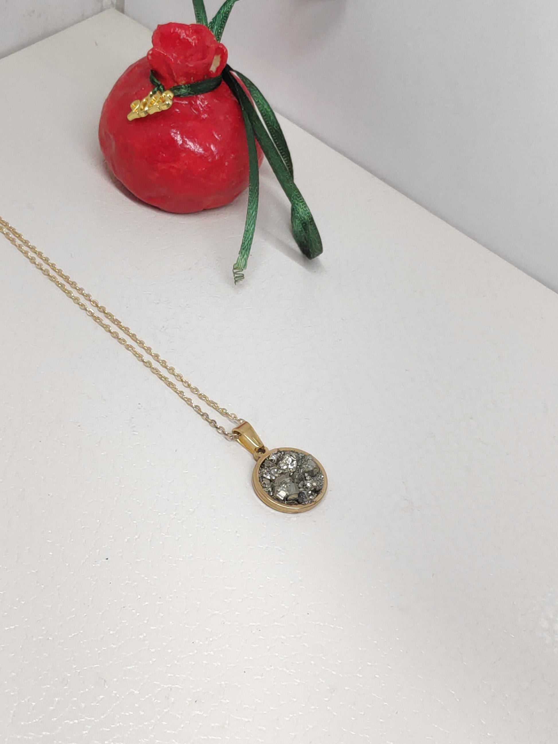 Women's pendant necklace with Raw Pyrite. wealth stone, natural gemstone , gold plated non tarnish adjustable stainless steel chain 45-60cm(18-20inches)